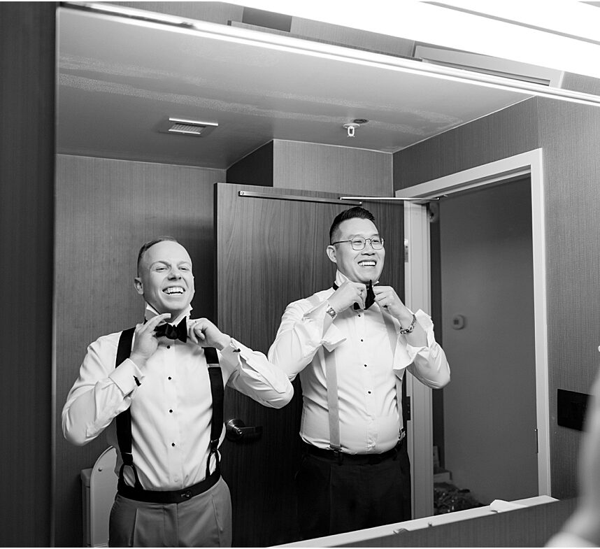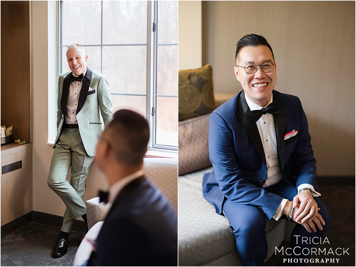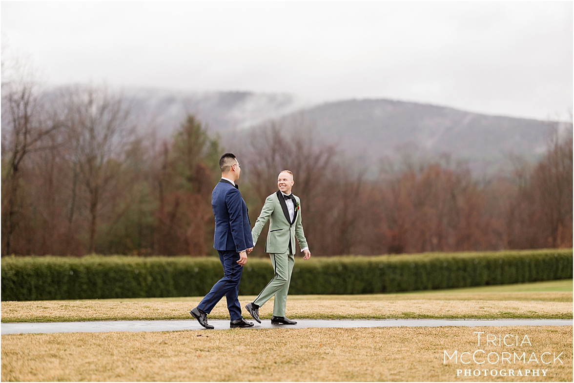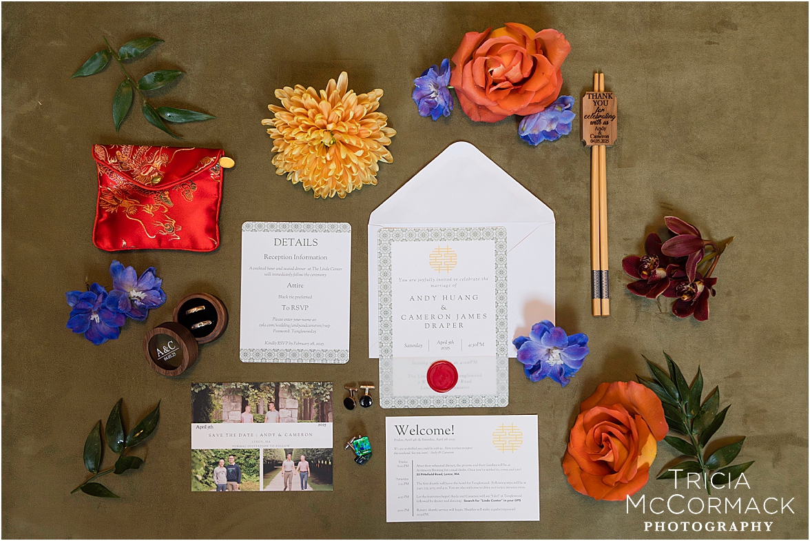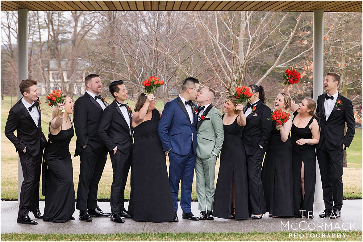This past Saturday, Lisa and I had the pleasure of capturing Andy and Cameron’s wedding at one of our favorite venues, the stunning Tanglewood. From the moment we arrived, it was clear these two were absolutely buzzing with excitement and love. Cameron was sharp in his sage green tux, while Andy nailed the classic look in navy. The energy in their getting-ready room was electric, with their wedding parties and family adding to the fun.