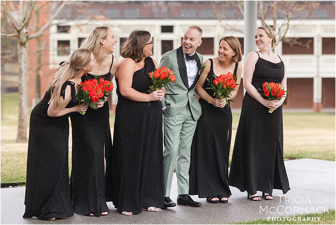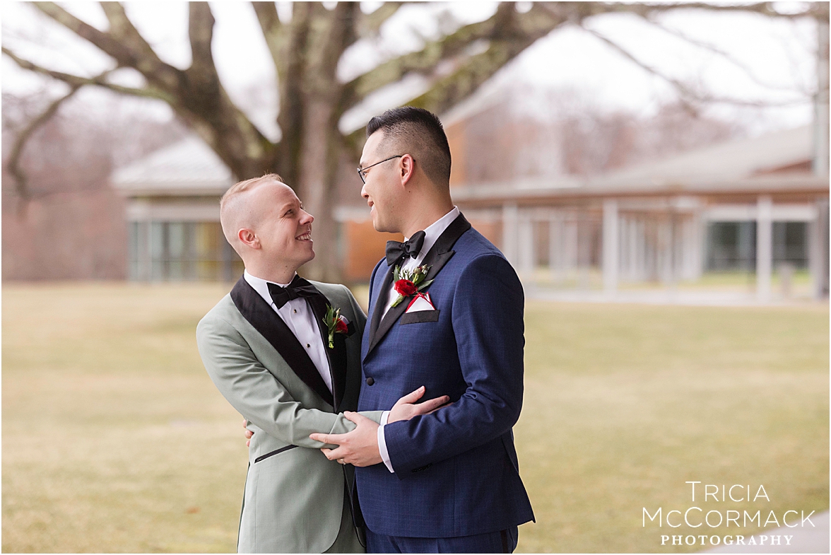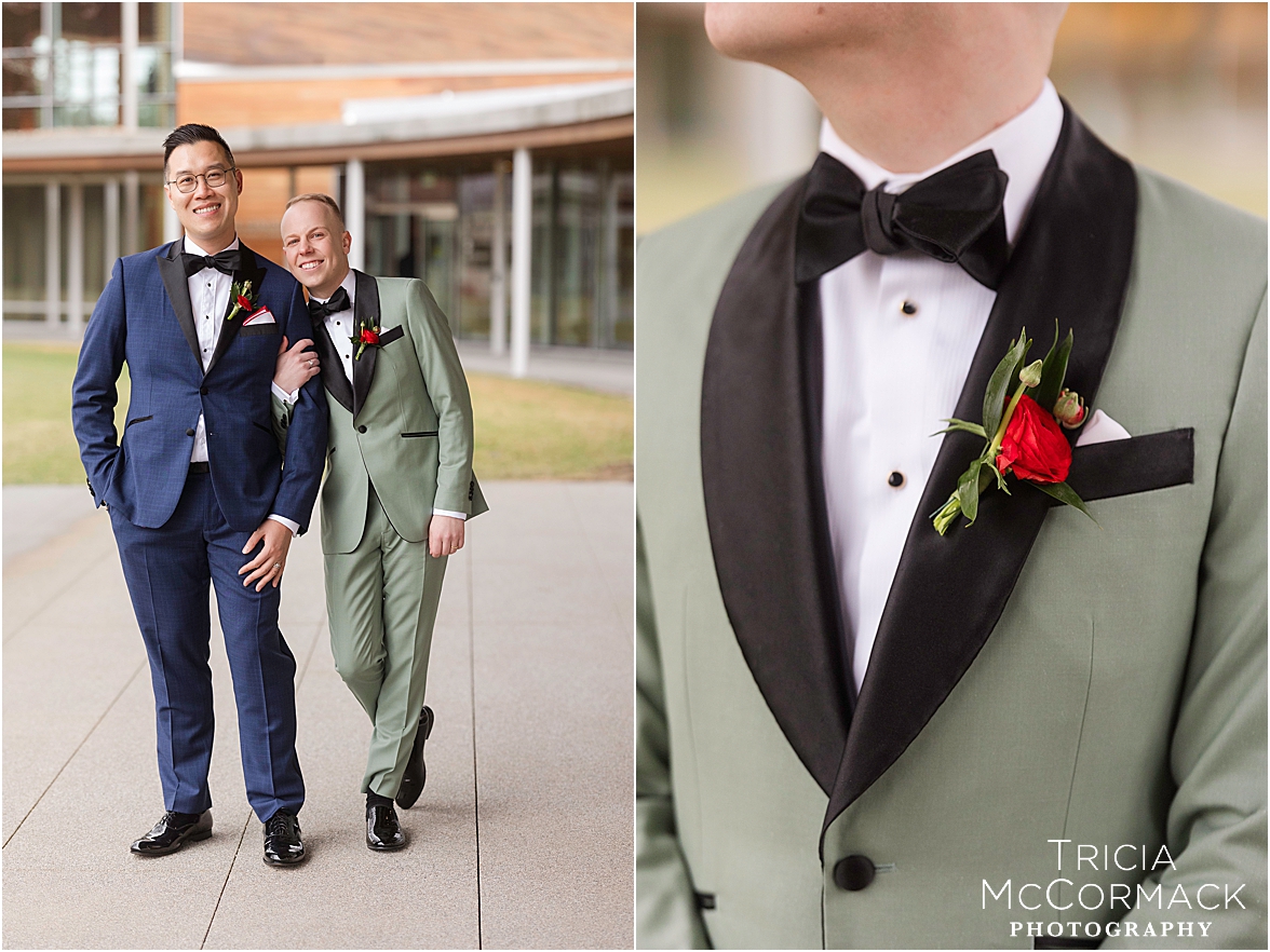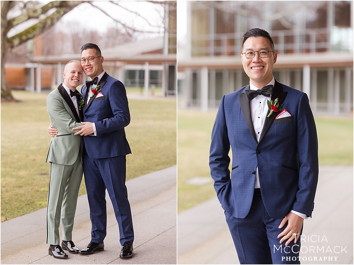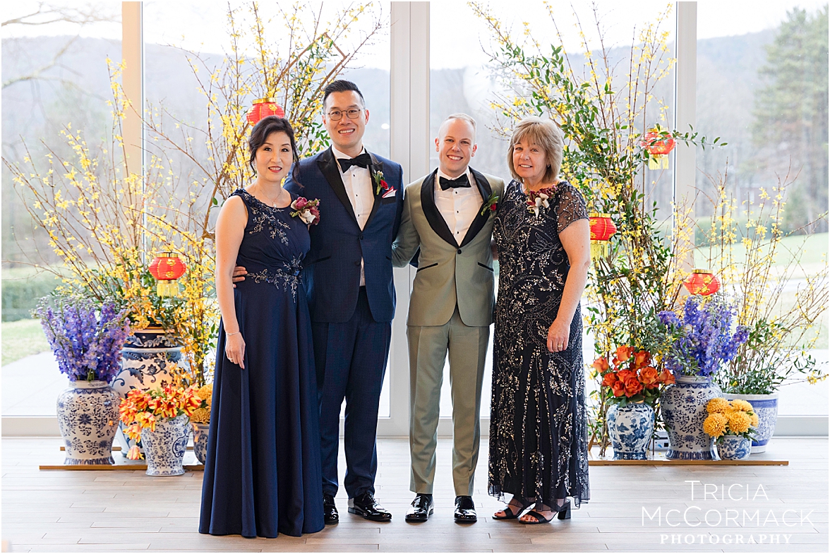This past Saturday, Lisa and I had the pleasure of capturing Andy and Cameron’s wedding at one of our favorite venues, the stunning Tanglewood. From the moment we arrived, it was clear these two were absolutely buzzing with excitement and love. Cameron was sharp in his sage green tux, while Andy nailed the classic look in navy. The energy in their getting-ready room was electric, with their wedding parties and family adding to the fun.