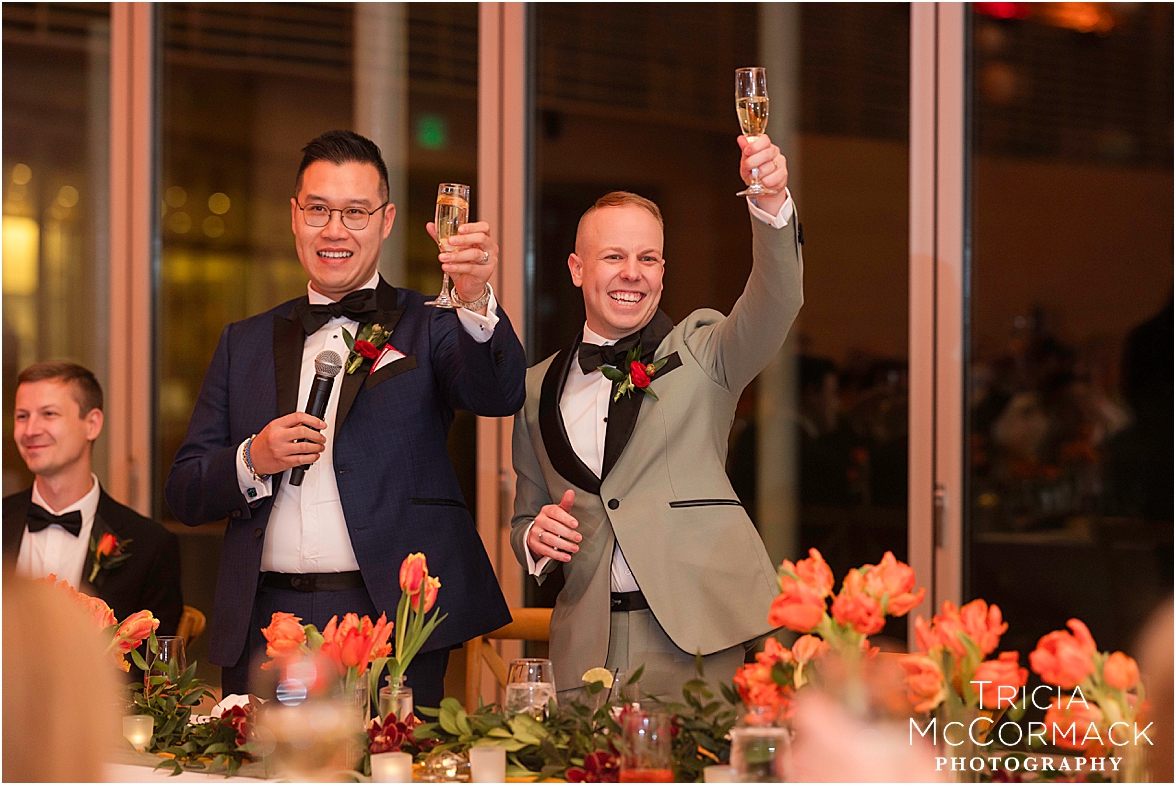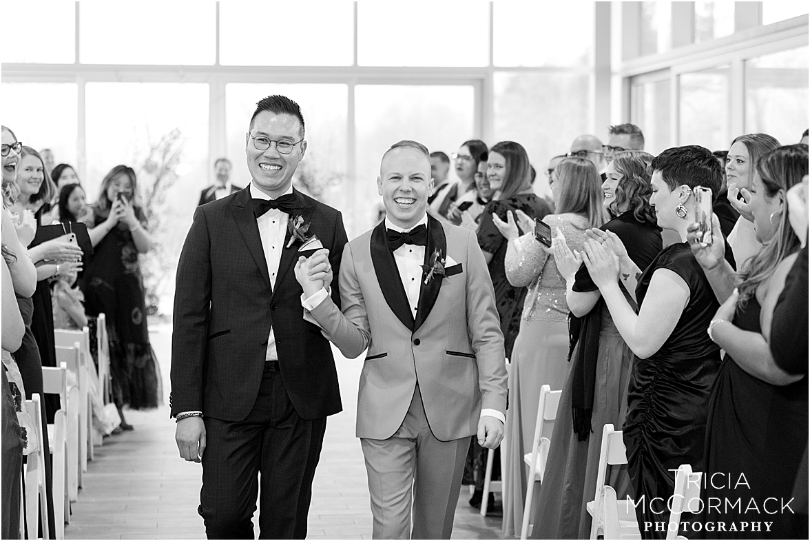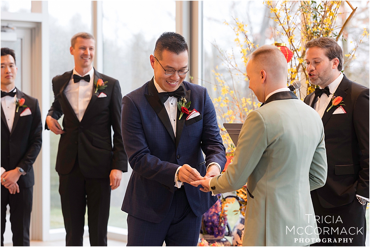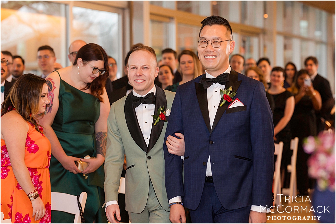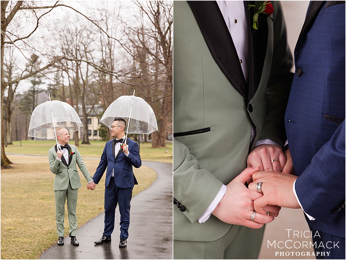 Despite the spring rain, Andy and Cameron took it in stride with clear umbrellas and plenty of laughter. It was impossible not to feel the joy in the air—wedding vendors reconnecting after a quiet winter, and guests arriving to celebrate two grooms that are clearly adored by everyone.