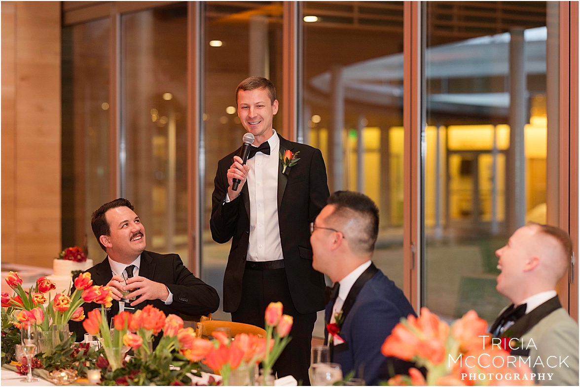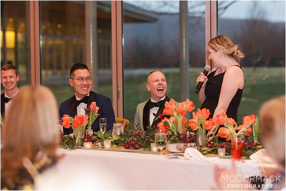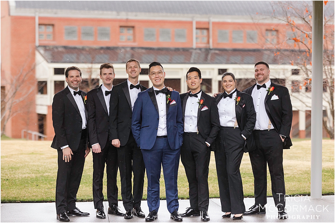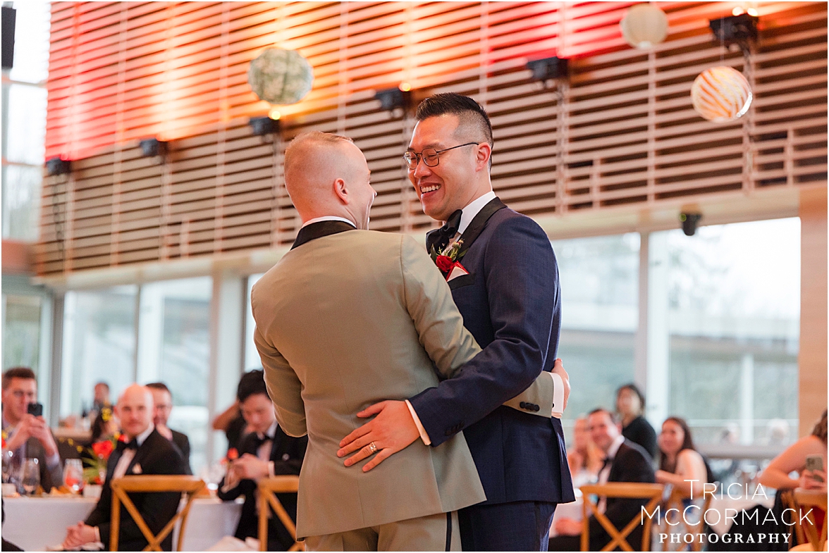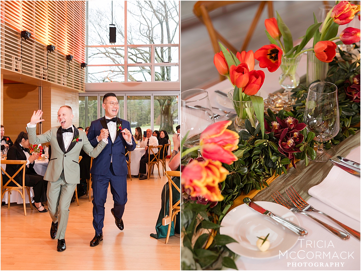 Despite the spring rain, Andy and Cameron took it in stride with clear umbrellas and plenty of laughter. It was impossible not to feel the joy in the air—wedding vendors reconnecting after a quiet winter, and guests arriving to celebrate two grooms that are clearly adored by everyone.