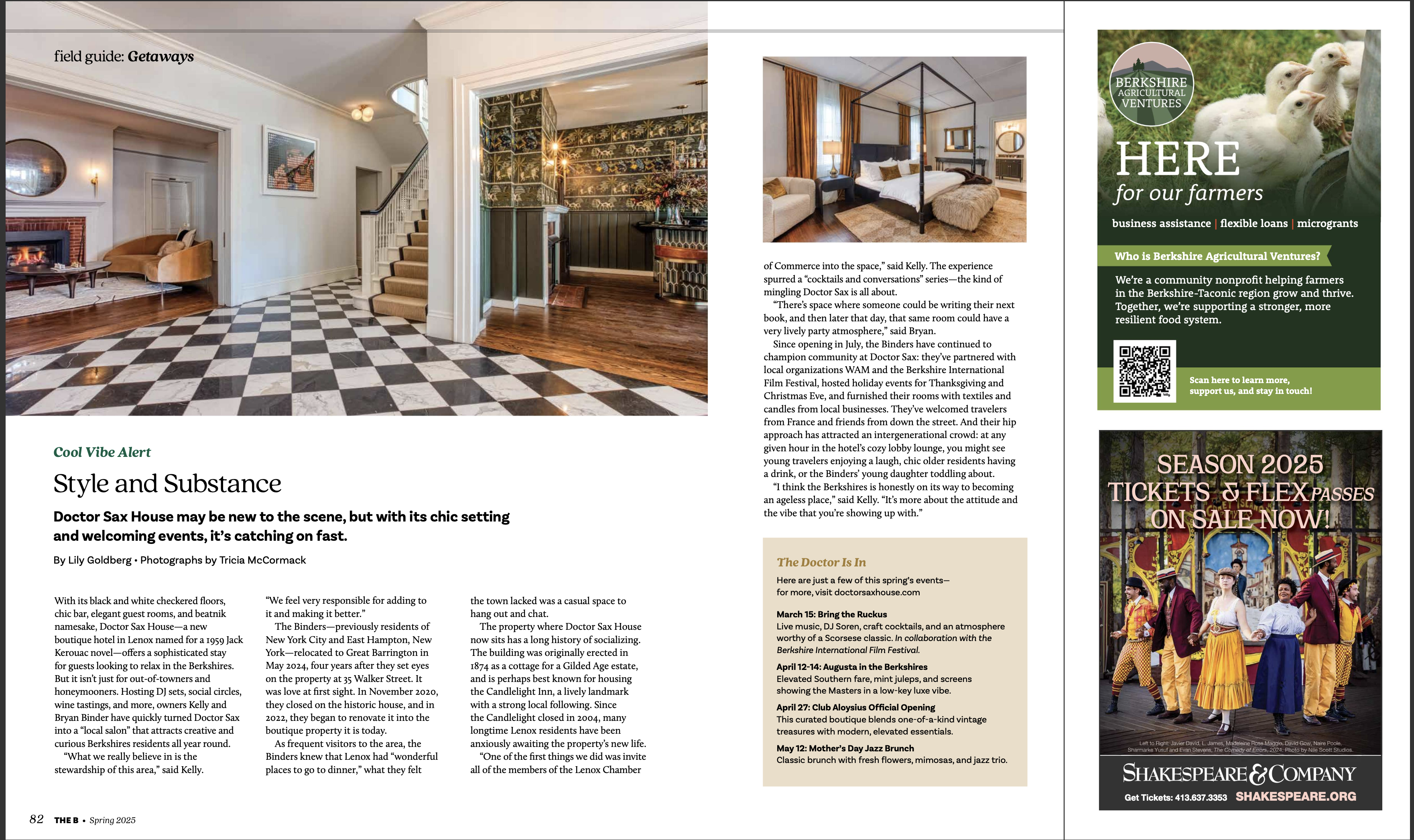 We are thrilled to share our recent collaboration with Doctor Sax House, a newly renovated inn nestled in the heart of Lenox. Dating back to 1874, this historic property has a rich history, from its origins as a Gilded Age cottage to its transformation into a speakeasy during Prohibition. Each room tells a story, seamlessly combining historical elements with contemporary design to create a welcoming and inspiring atmosphere.