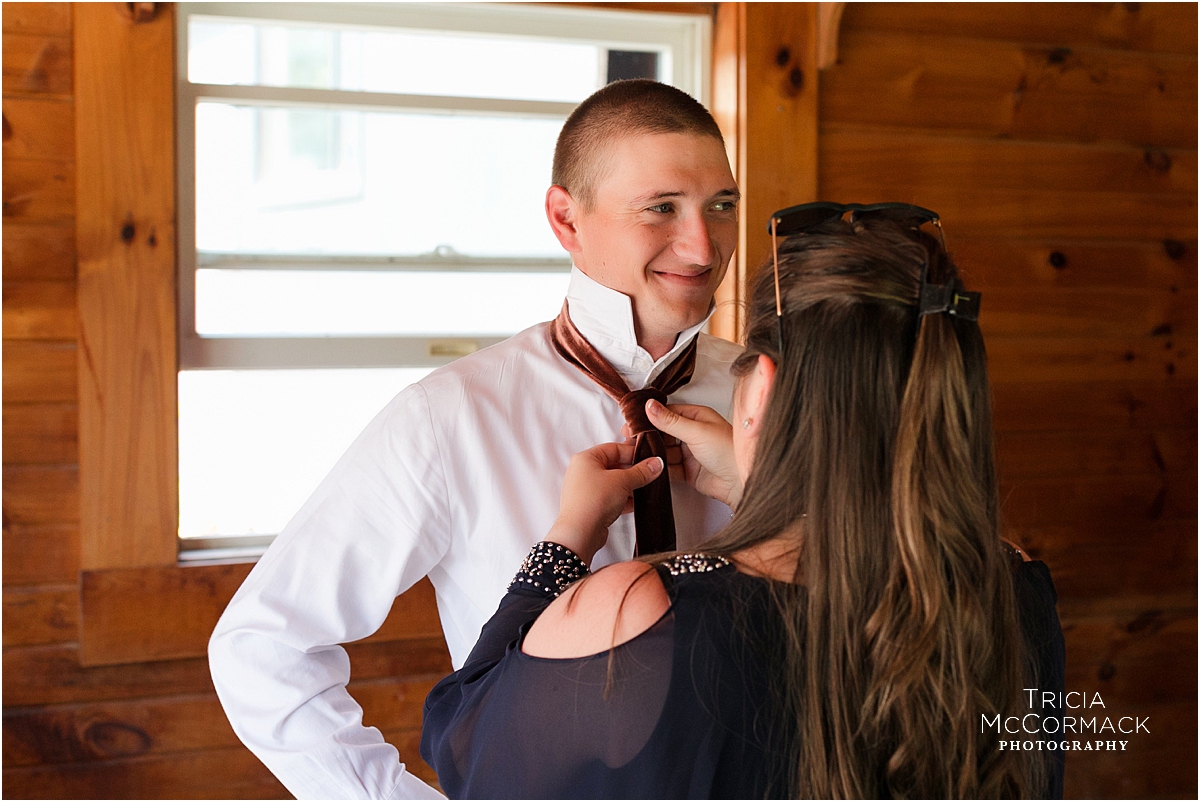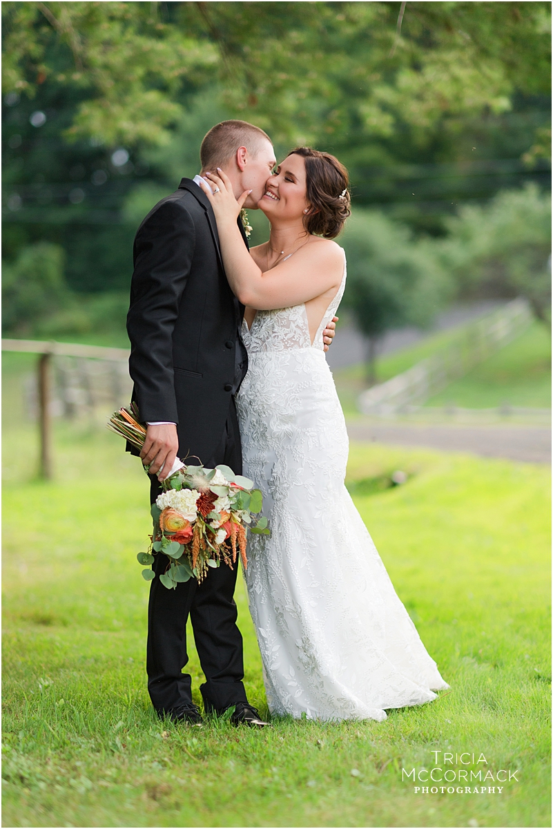 Greer and Jared’s wedding at Cottage Farm of the Berkshires was the very first wedding to happen at this brand-new Berkshire venue. This space was once a working horse farm and was recently renovated to be an all-inclusive wedding weekend spot. Greer and Jared stayed in the cabin the night before and both got ready in separate spaces the day of.