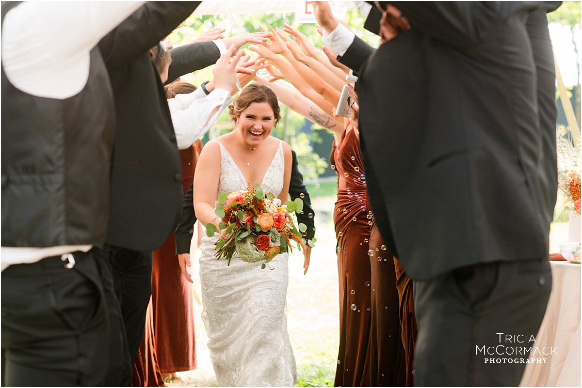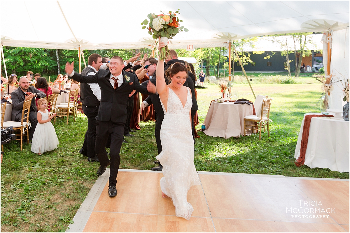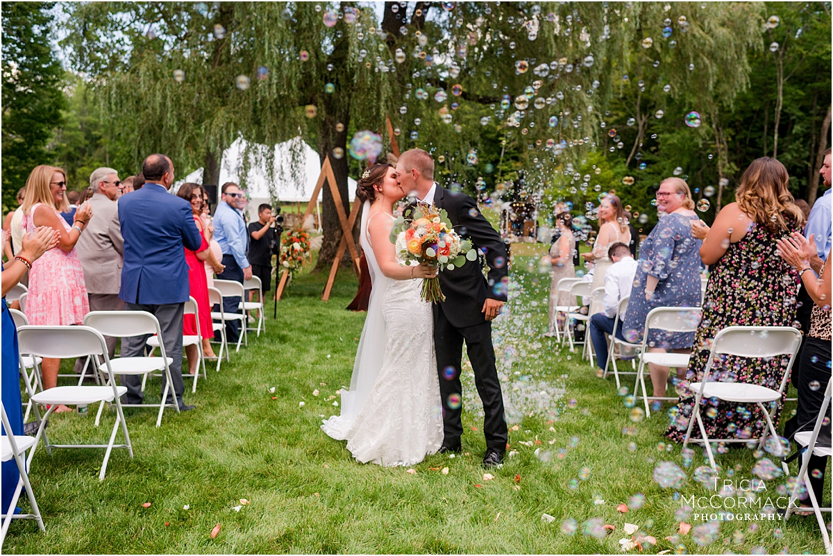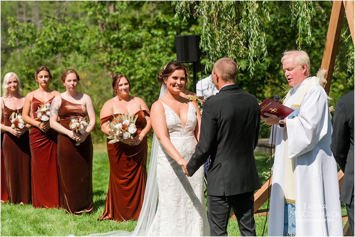 Greer and Jared met in middle school (they were 11 yeas old) and have been inseparable ever since. Their family, friends, and crew of nieces and nephews couldn’t have been happier to witness the two finally be married after all these years of dating. Bubbles filled the air as they walked down the aisle as Mr. and Mrs. Pease. The tented reception was stunning. Greer’s vision came to life. The terracotta, rust, and black accents she had been DIYing for months came together beautifully. Their favorite part of the day was seeing each other for the first time at the beginning of the ceremony.