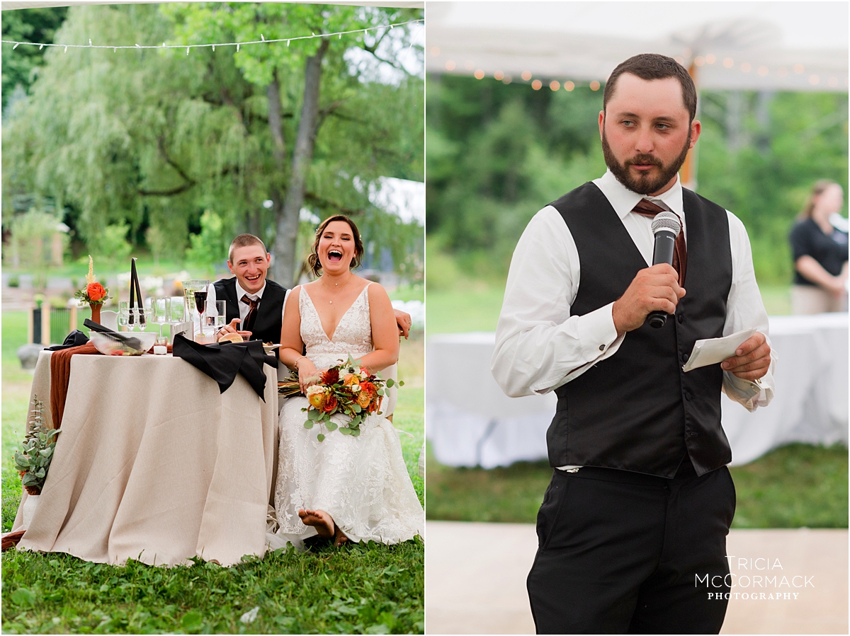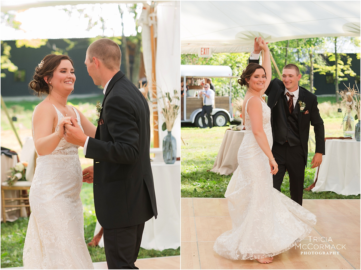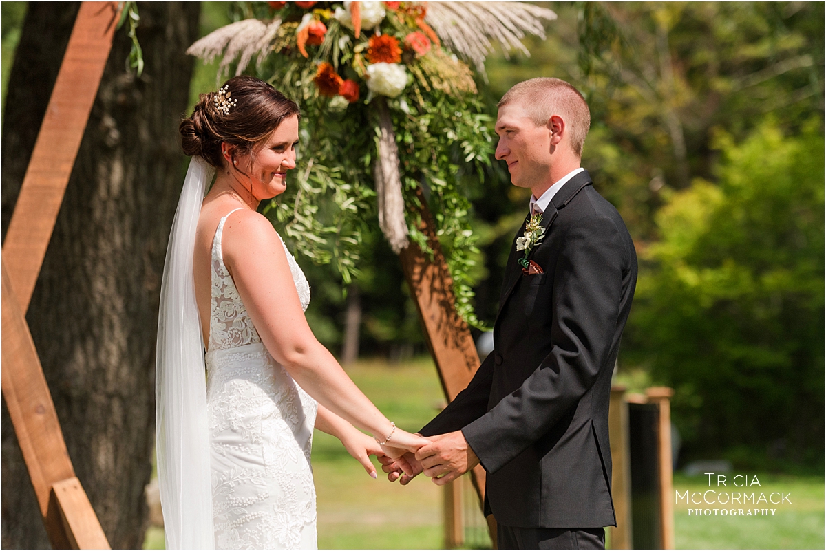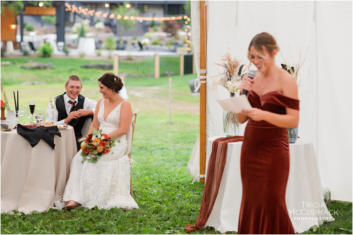 Greer and Jared met in middle school (they were 11 yeas old) and have been inseparable ever since. Their family, friends, and crew of nieces and nephews couldn’t have been happier to witness the two finally be married after all these years of dating. Bubbles filled the air as they walked down the aisle as Mr. and Mrs. Pease. The tented reception was stunning. Greer’s vision came to life. The terracotta, rust, and black accents she had been DIYing for months came together beautifully. Their favorite part of the day was seeing each other for the first time at the beginning of the ceremony.