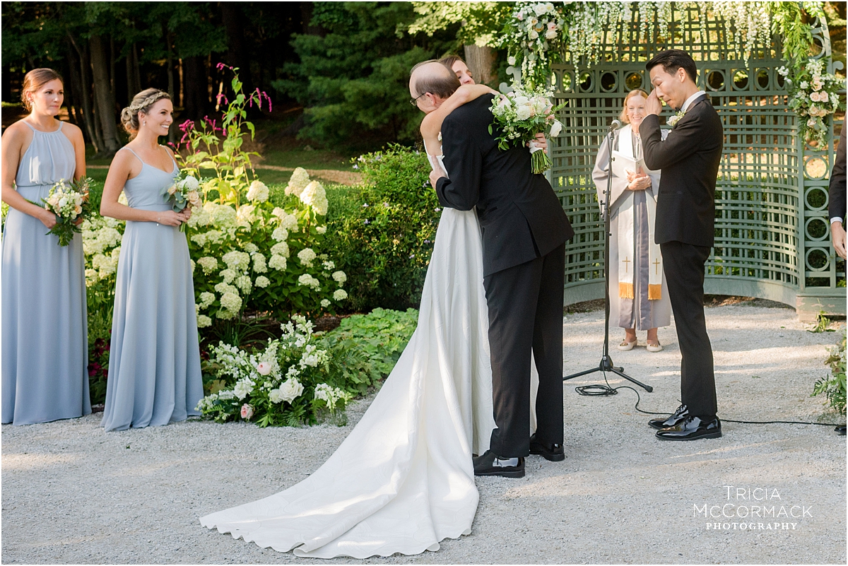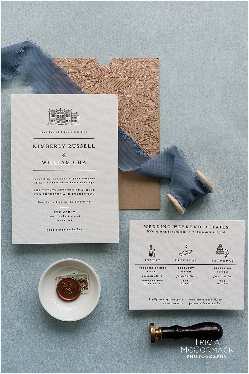 I loved being a part of Kimber and Will’s day. Their warmth and kindness was evident months ago during our first conversation by phone. For me, one of my favorite things to uncover is why my couples choose to have their wedding in the Berkshires. In Kimber and Will’s case it seems kismet that even though they met in Boston they both have childhood ties to this area. Kimber feels sentimental about Stockbridge where she spent summers as a kid and during those same years, Will was traveling to Tanglewood while his sister practiced with the Boston Symphony Orchestra. During her speech, Will’s sister mentioned how those memorable visits as a family provided a very strong presence of their late mother here in the Berkshires. Will’s mother’s paintings decorated the inside of the tent which was set up in the forecourt of The Mount. What an incredible and unique way to honor her during their wedding day.