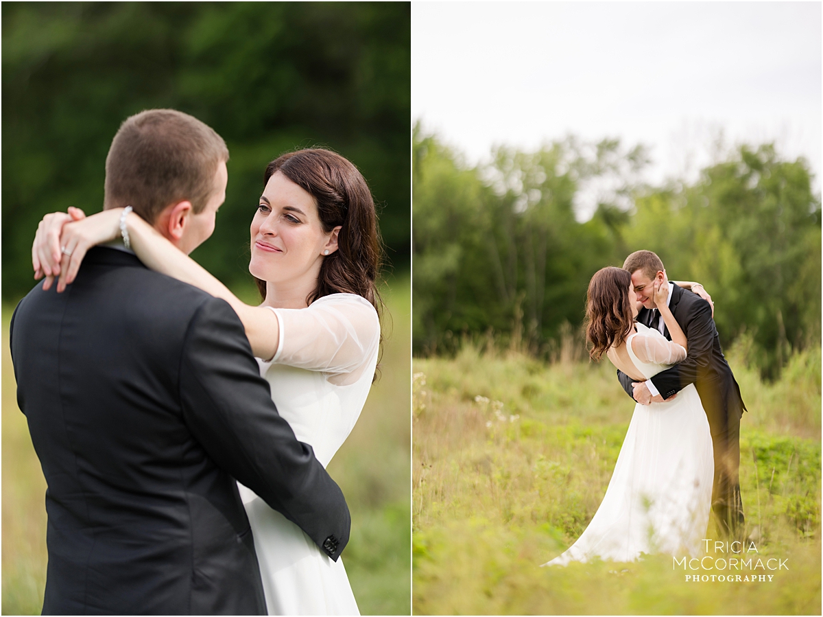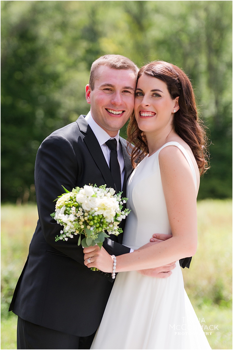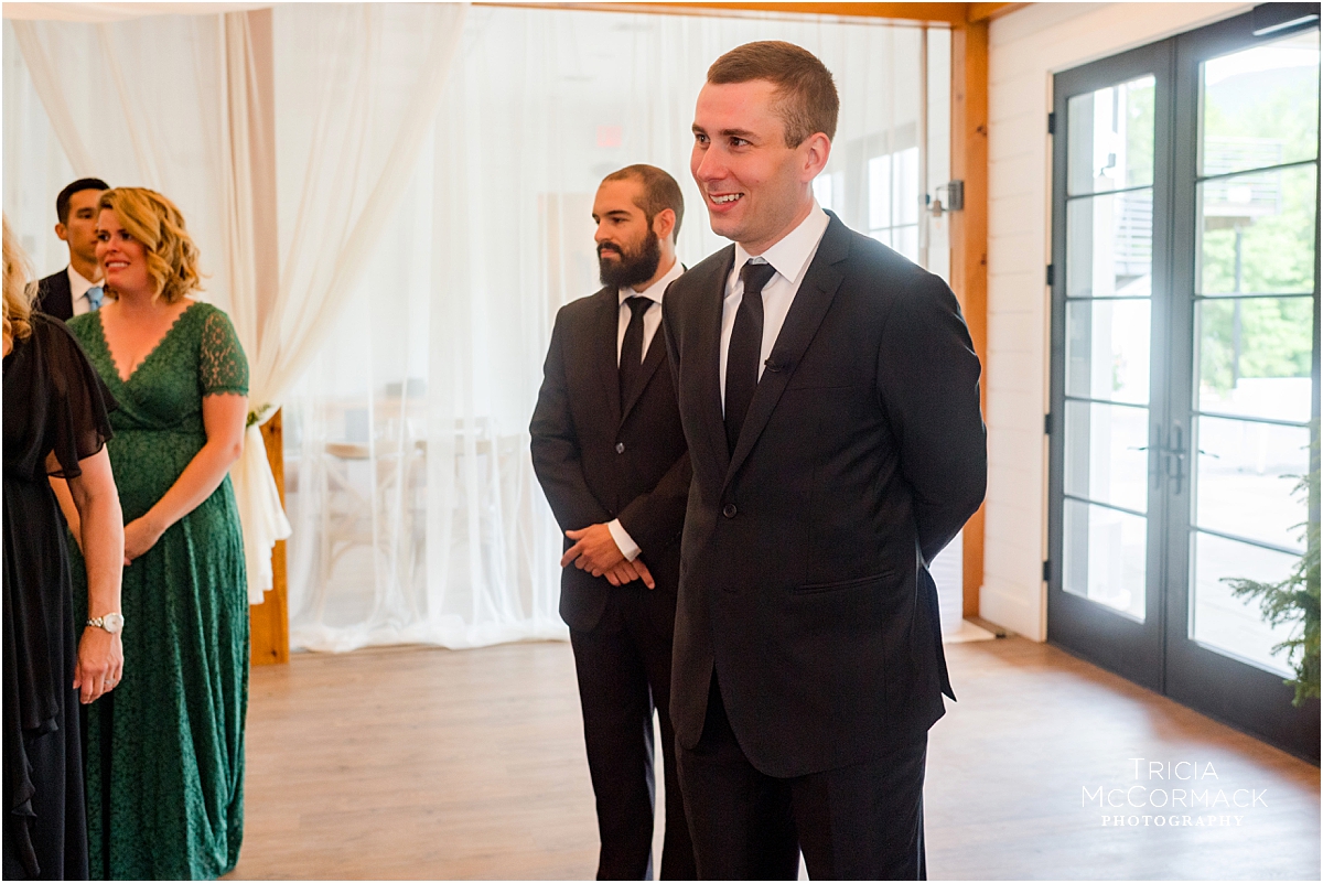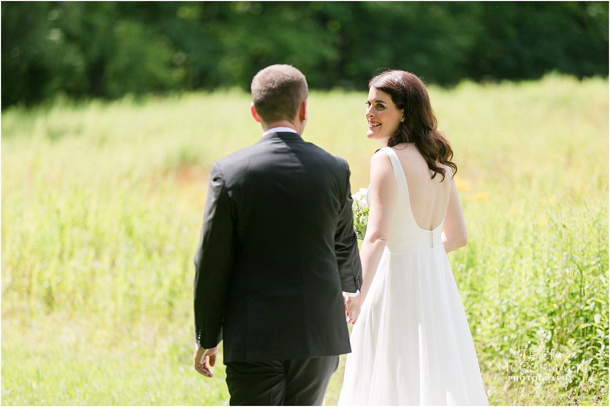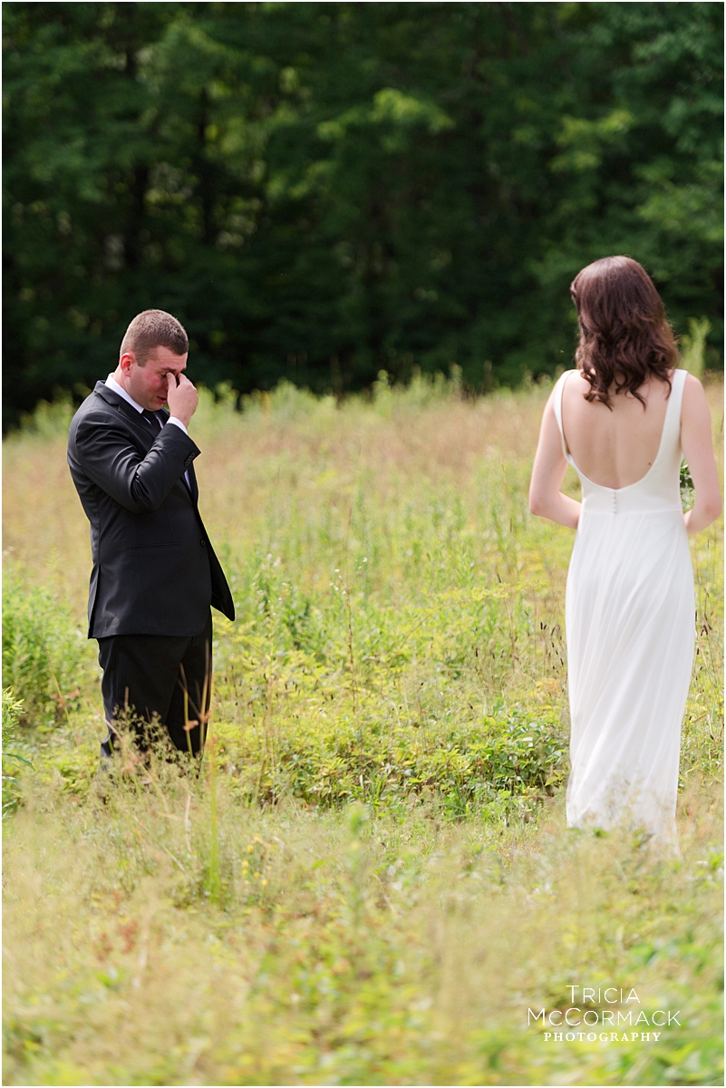 Megan and Andrew’s love of the outdoors was beautifully matched with the greenery that decorated the indoor ceremony space and the summer BBQ vibe of the cocktail hour and reception. It was such a special moment watching them enjoy their first look. They were not sure if a first look was right for them, but after having this special moment together before everyone saw them, they knew they made the right choice. They even commented how surreal and intimate it was to be with each other during this time.
