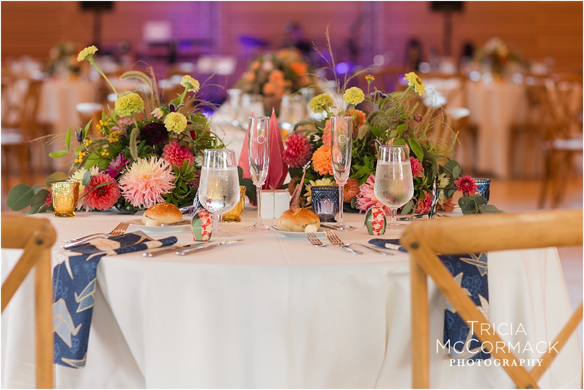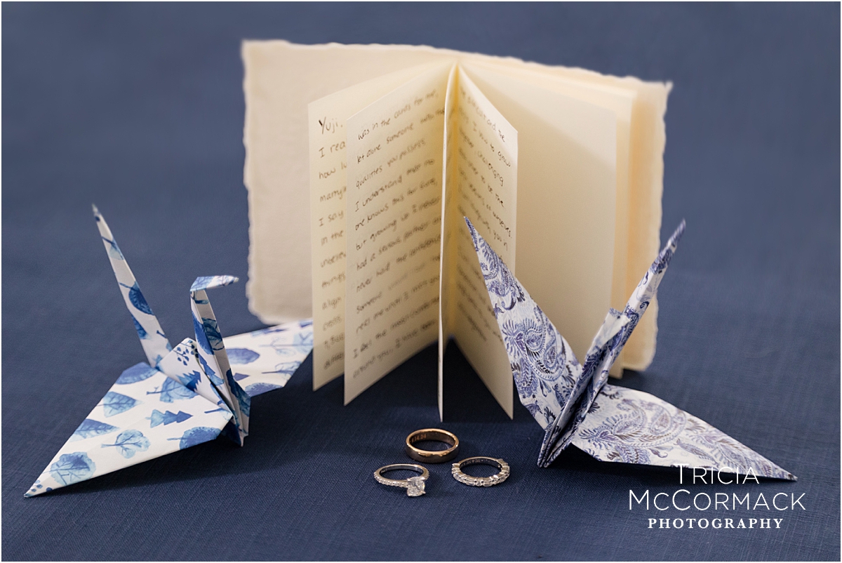 Natalie and Yuji’s wedding at Tanglewood in Lenox, MA, was a beautiful fusion of love, tradition, and personal touches. Delicate details were woven throughout their day to honor their Japanese heritage, most notably with paper cranes gracefully adorning the ceremony and reception spaces. These symbolic birds, representing longevity and happiness, brought the Linde Center to life. Deep hues of navy and blue popped on this perfect September day in the Berkshires.