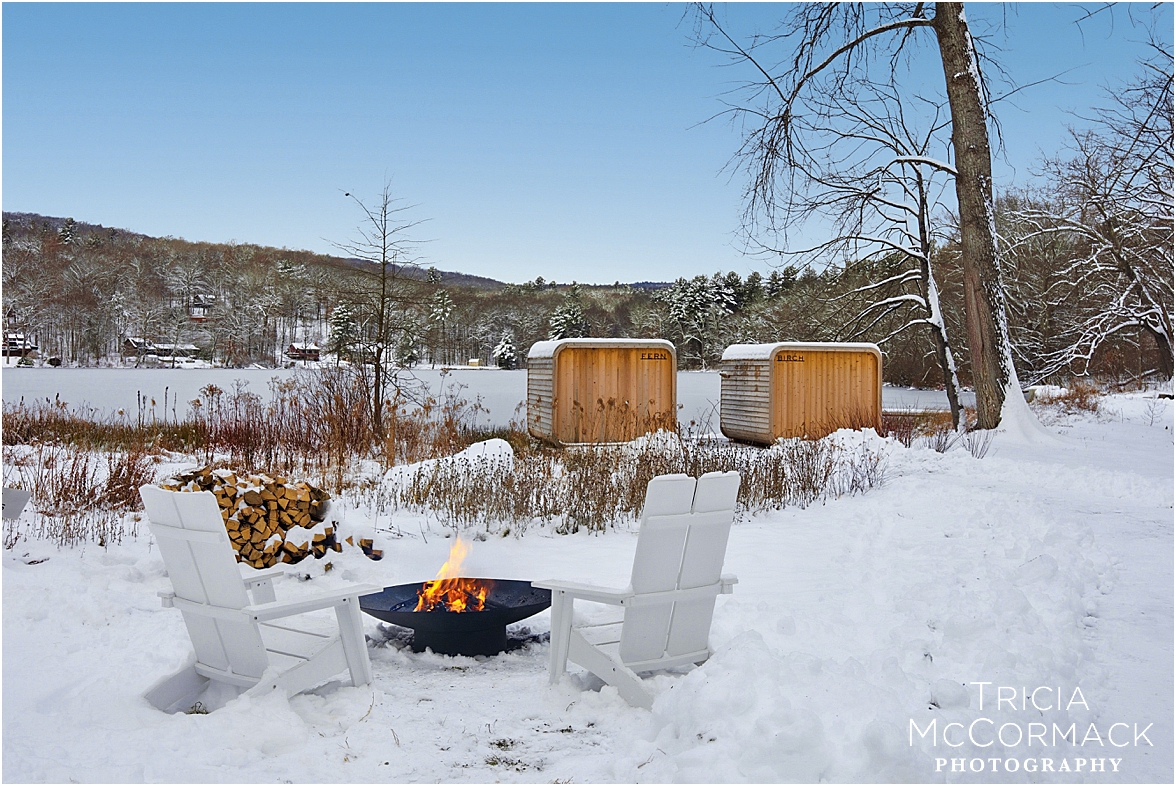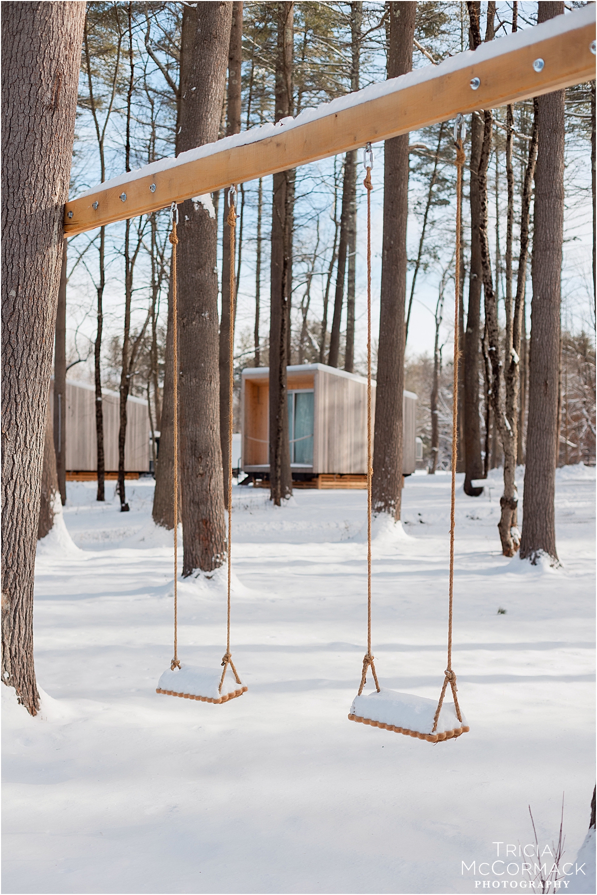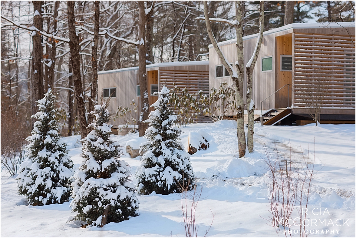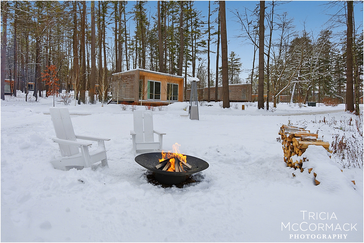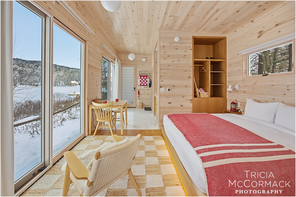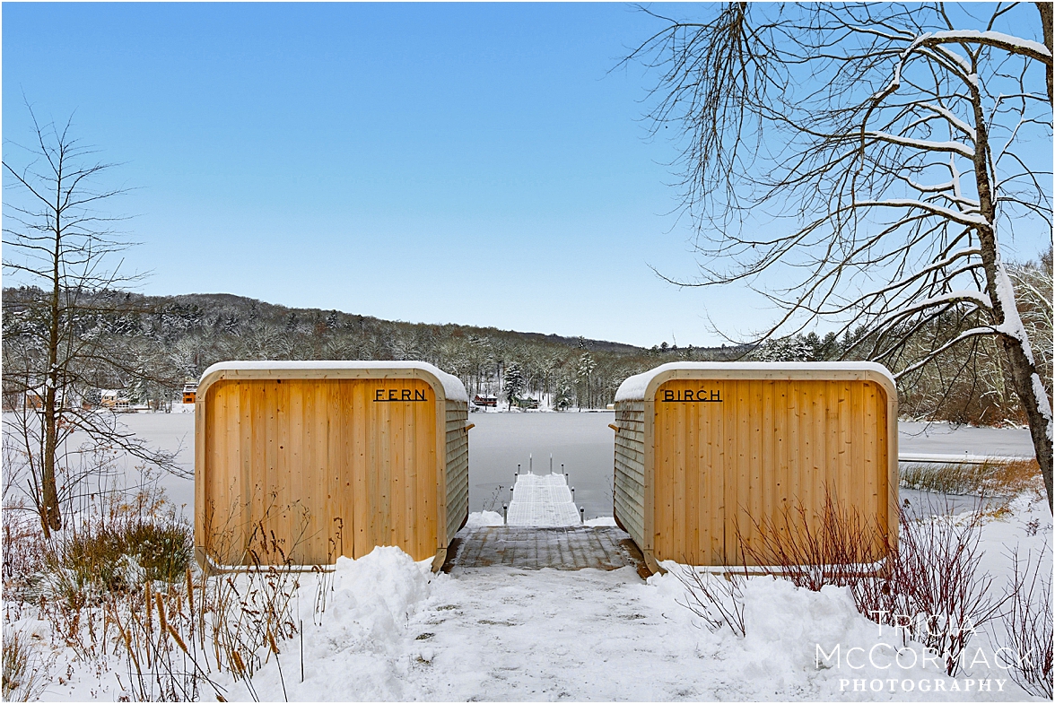 Their marketing team reached out just one day before the session, hoping to capture the property after the impending snowfall. They knew they could depend on Tricia McCormack Photography to show up on short notice and document the snow covered cabins, quiet paths, and stillness of the lake. Timing is everything with winter landscapes, and this session was about honoring the moment while the snow was fresh and untouched.