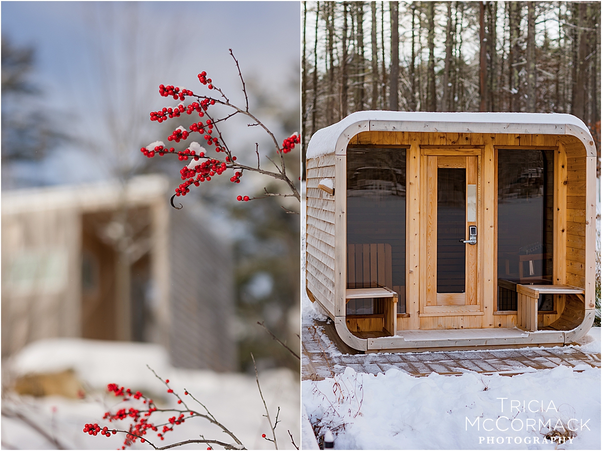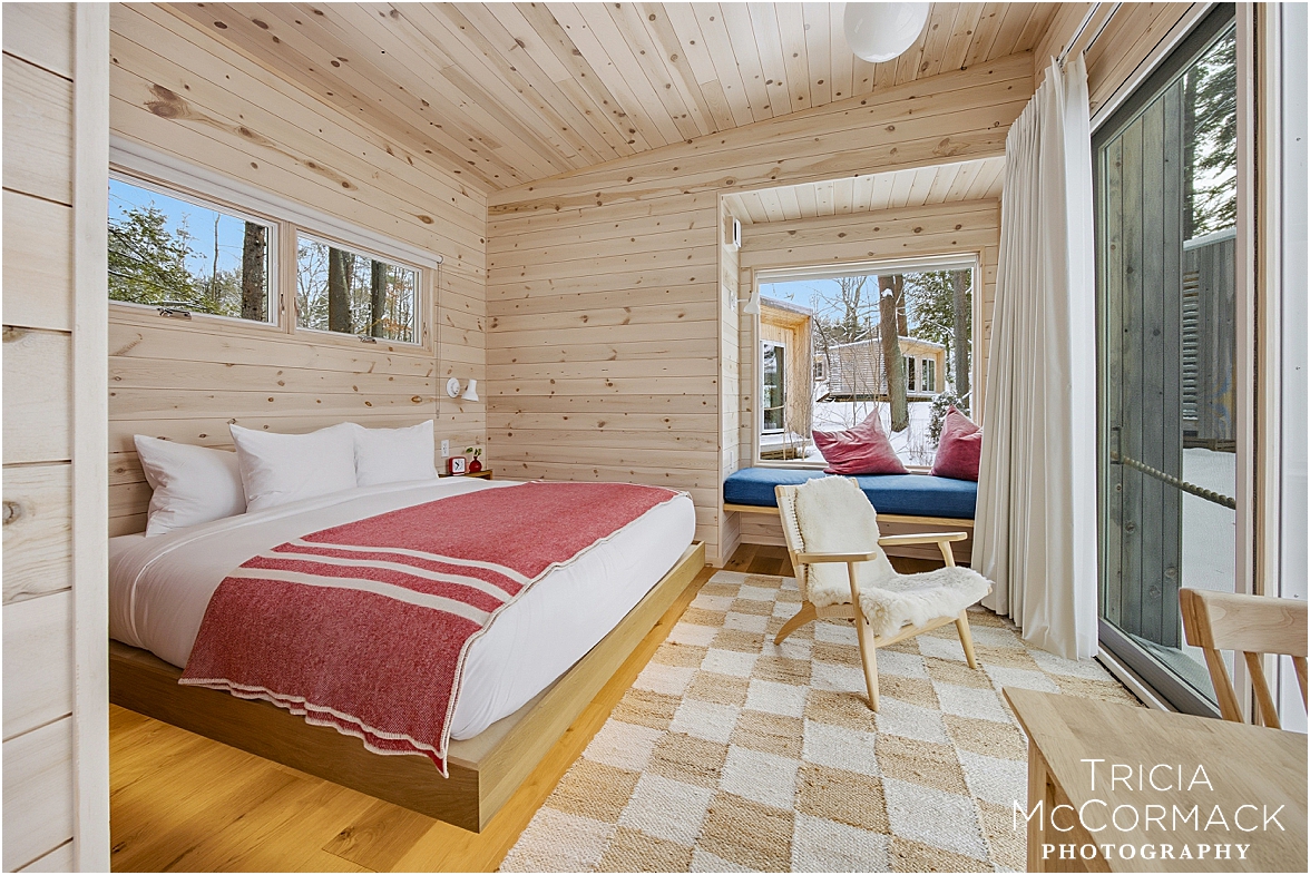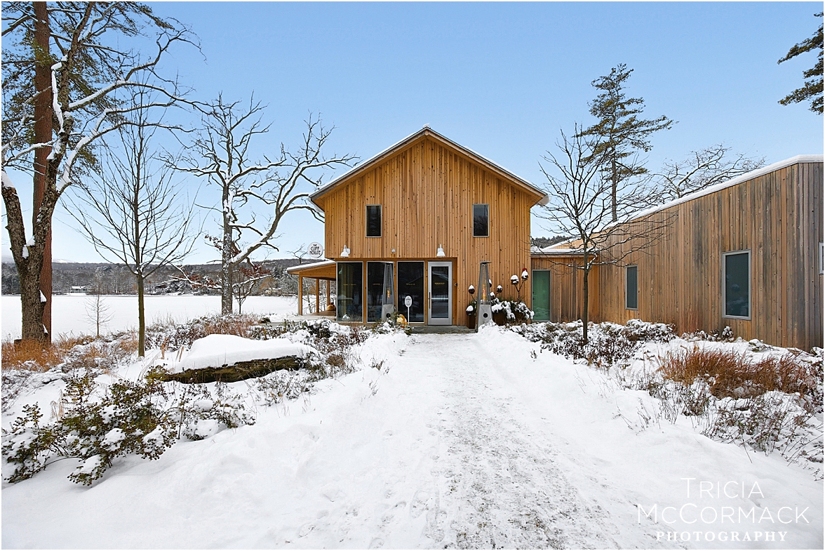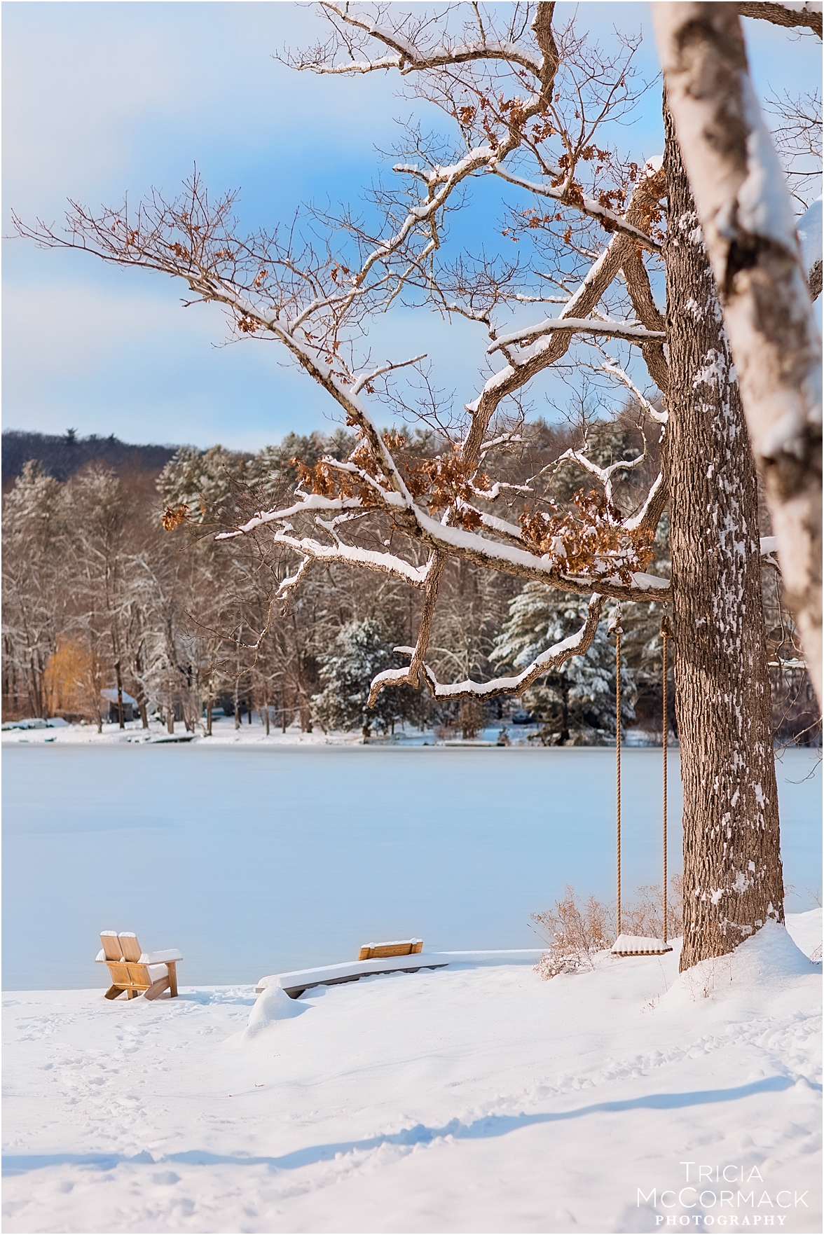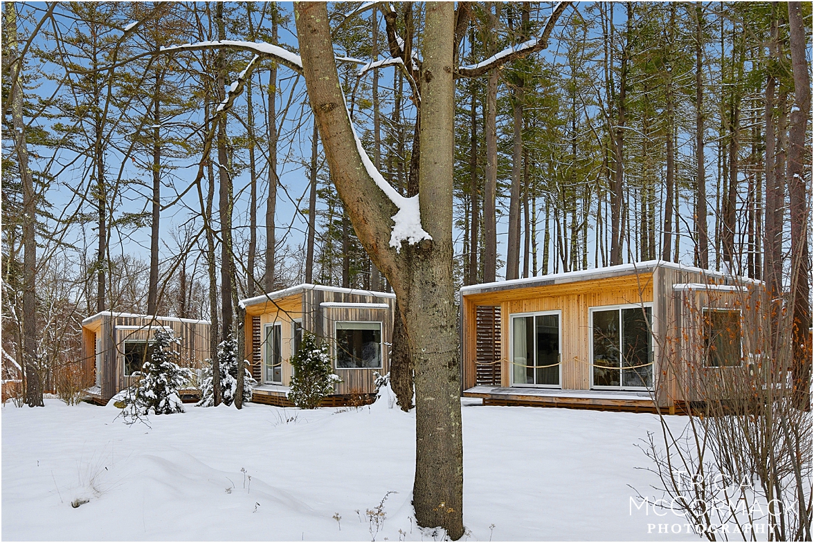 Their marketing team reached out just one day before the session, hoping to capture the property after the impending snowfall. They knew they could depend on Tricia McCormack Photography to show up on short notice and document the snow covered cabins, quiet paths, and stillness of the lake. Timing is everything with winter landscapes, and this session was about honoring the moment while the snow was fresh and untouched.