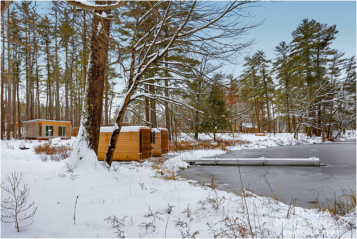 There is something especially peaceful about the Berkshires just after a fresh snowfall, and Lisa’s session at Prospect Berkshires captured that feeling beautifully. With snow softly covering the trees, cabins, and shoreline, the property felt quiet, cozy, and completely still.
