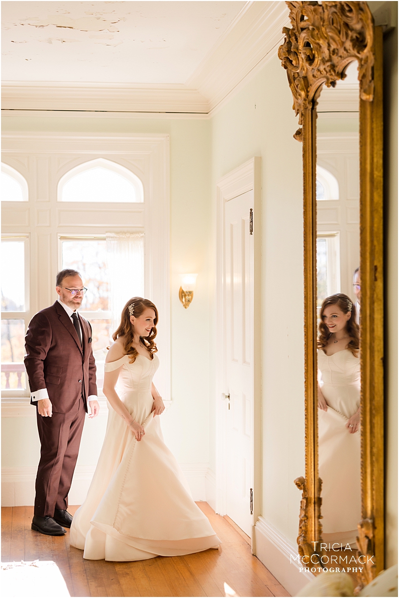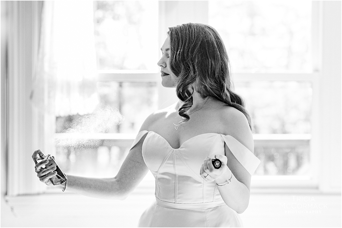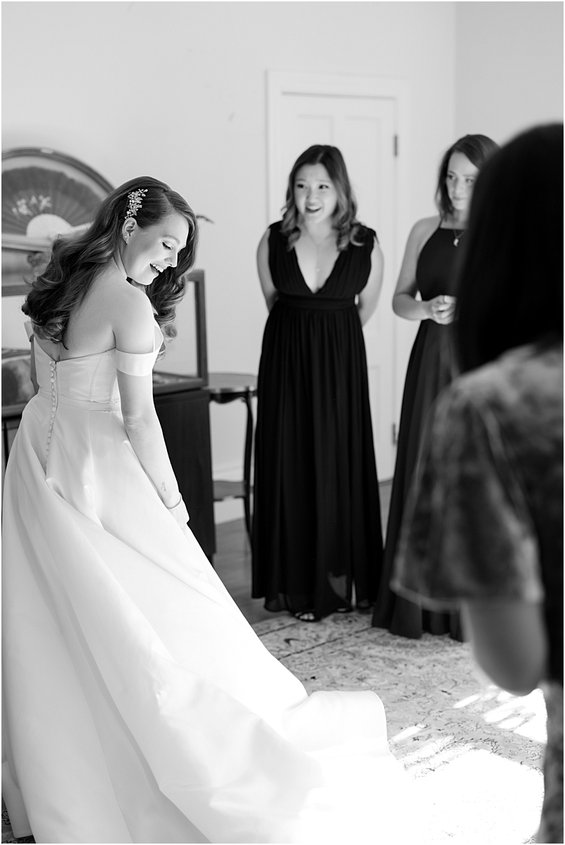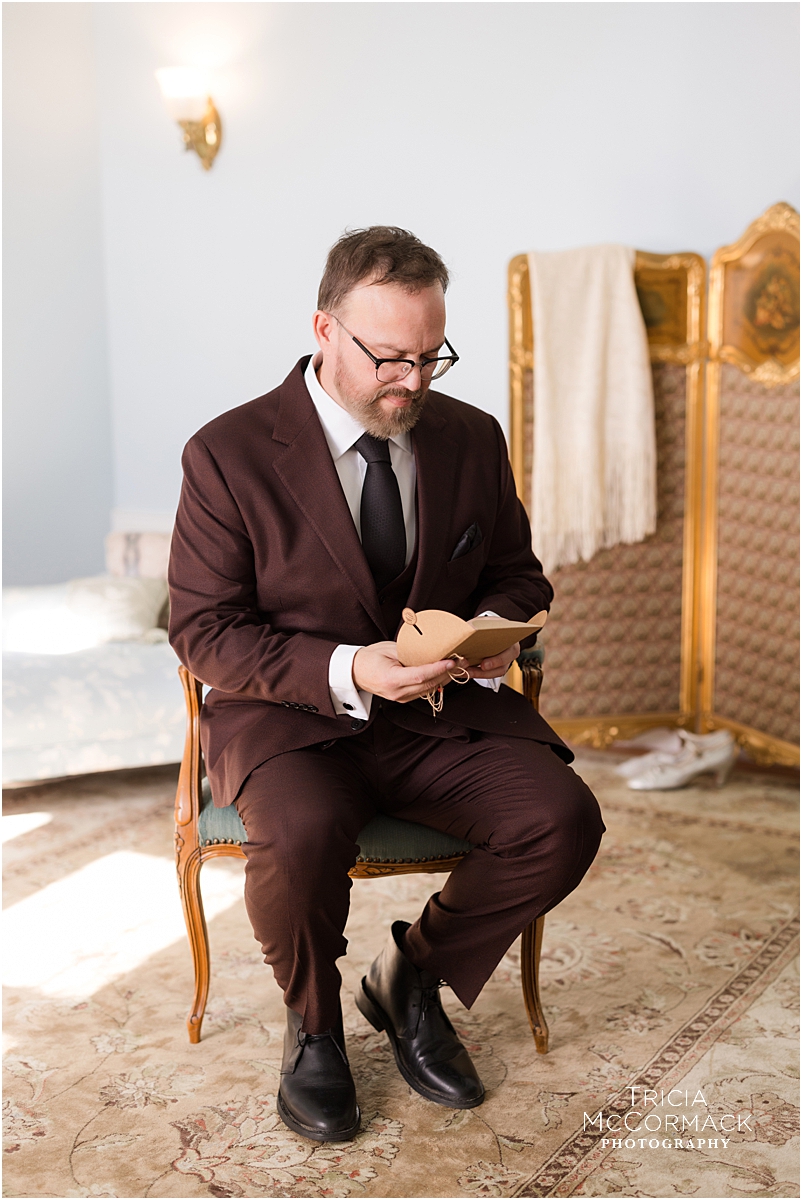 Rachel and Erich chose to get ready in adjoining rooms. Rachel did her own makeup and they each opened a gift from the other. Erich joined her to button up the back of her dress, which was such an adorable part of the day. Erich would bustle her dress for her too later in the night. He didn’t see her from the front until they met outside for their first look.