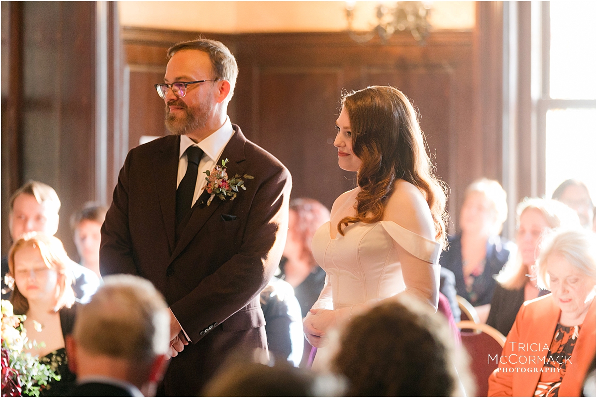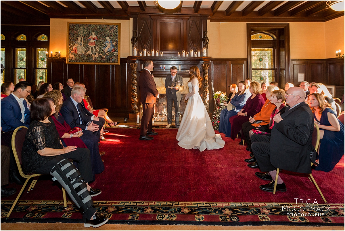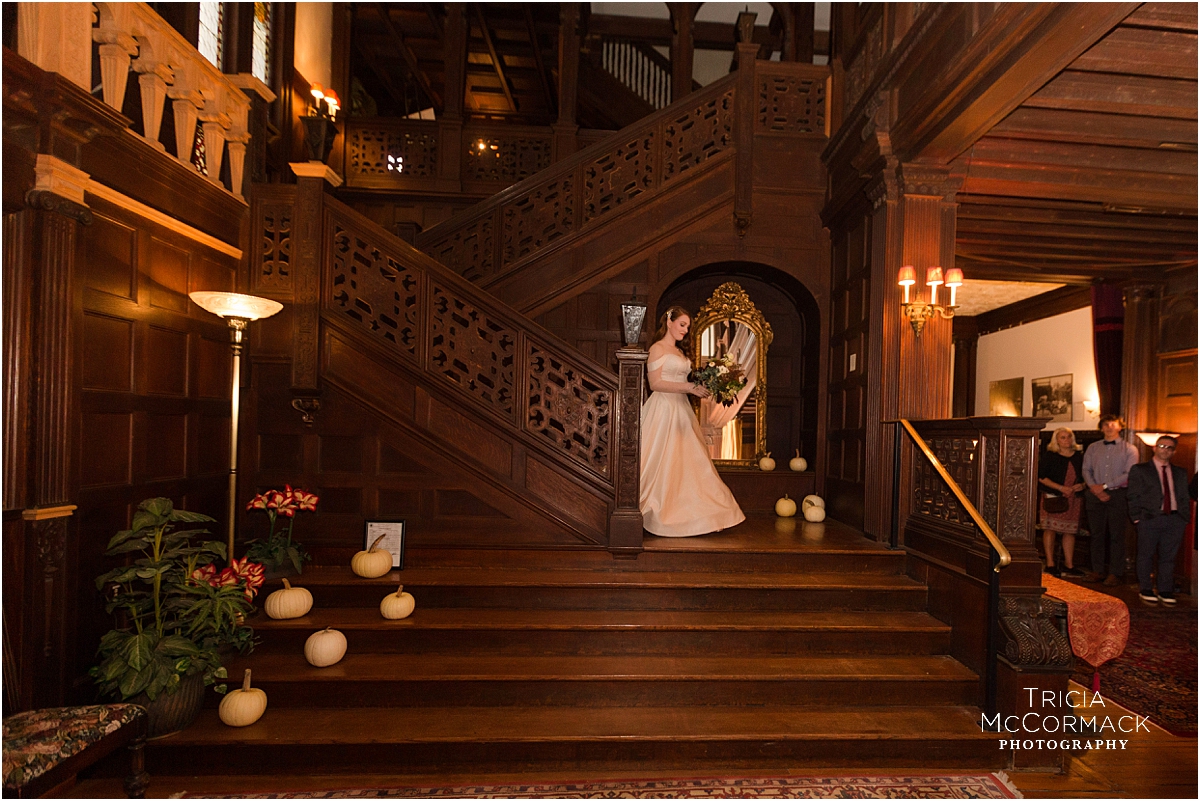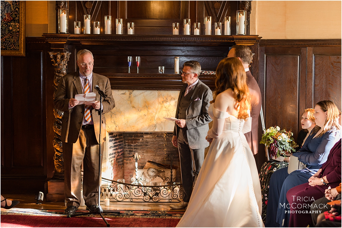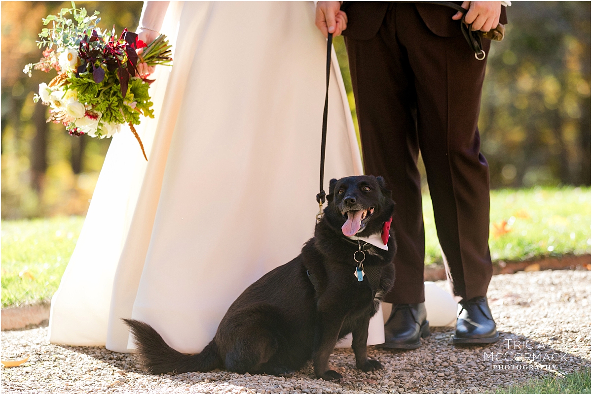Their dog Henry would have the honor of being the ring bearer and the ceremony started when they walked down the staircase meeting each other in the entryway. All of their guests then followed them into the room where they would exchange vows. It was special and unique.