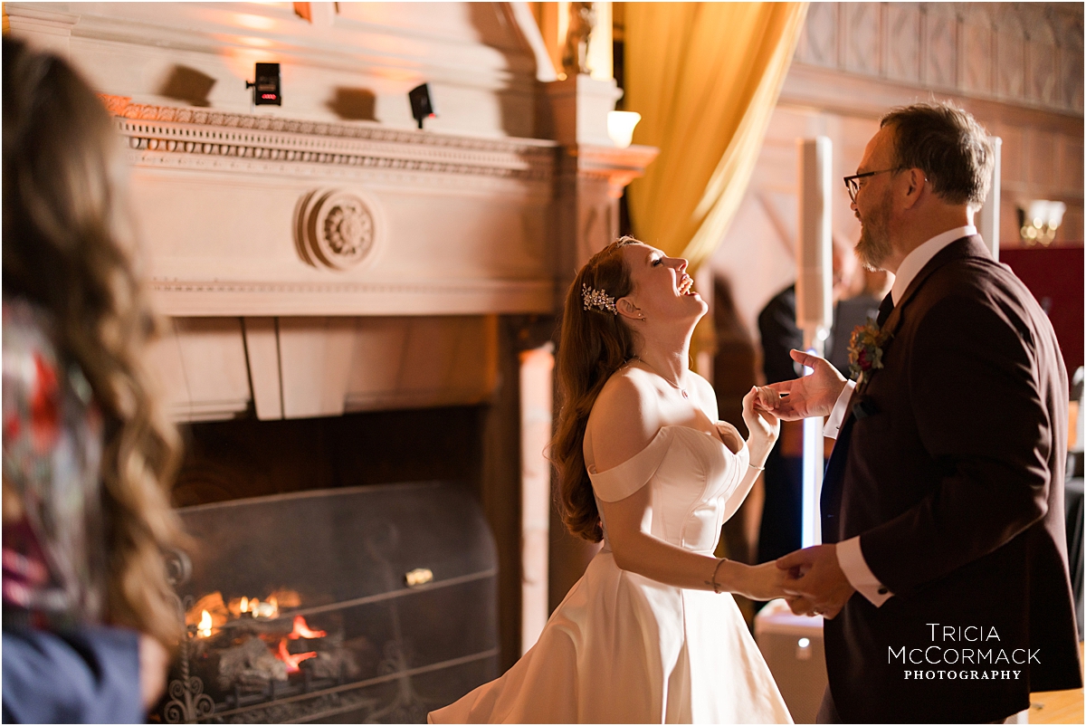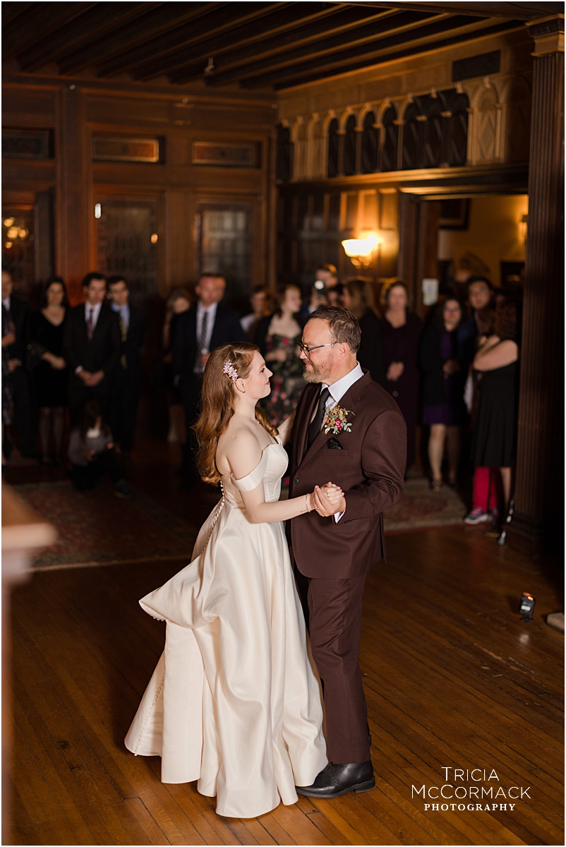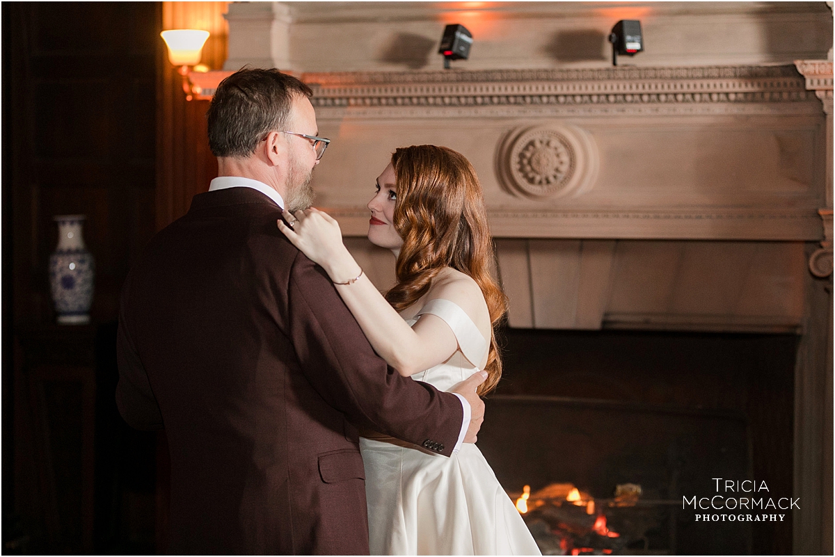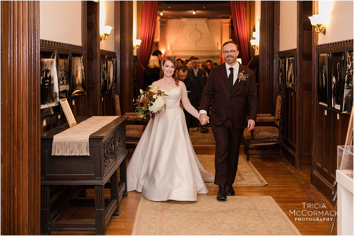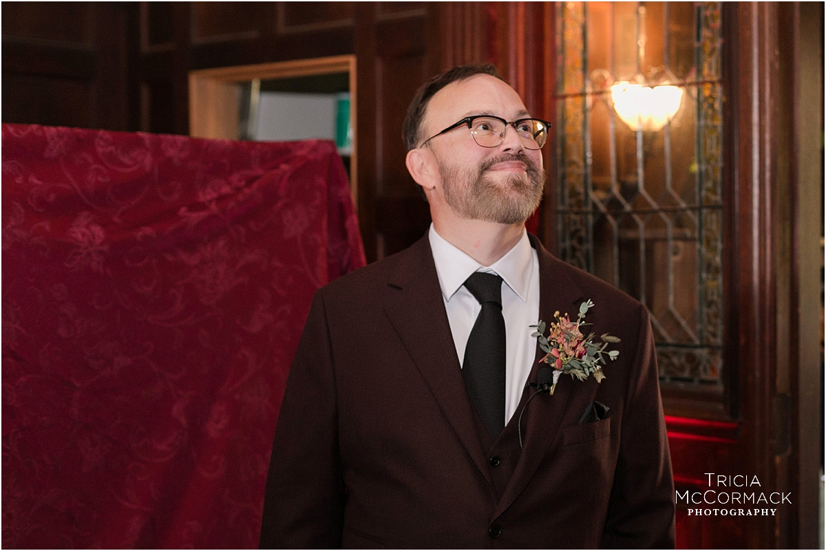 Their dog Henry would have the honor of being the ring bearer and the ceremony started when they walked down the staircase meeting each other in the entryway. All of their guests then followed them into the room where they would exchange vows. It was special and unique.