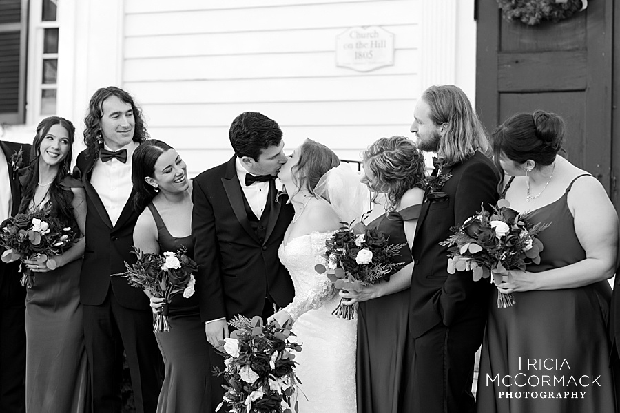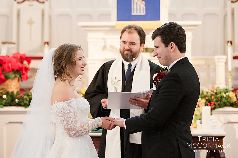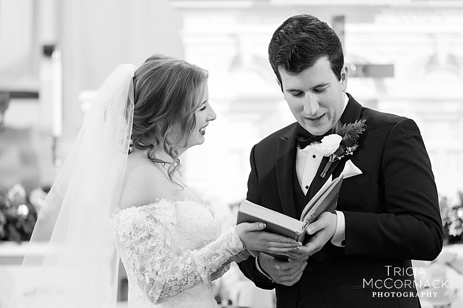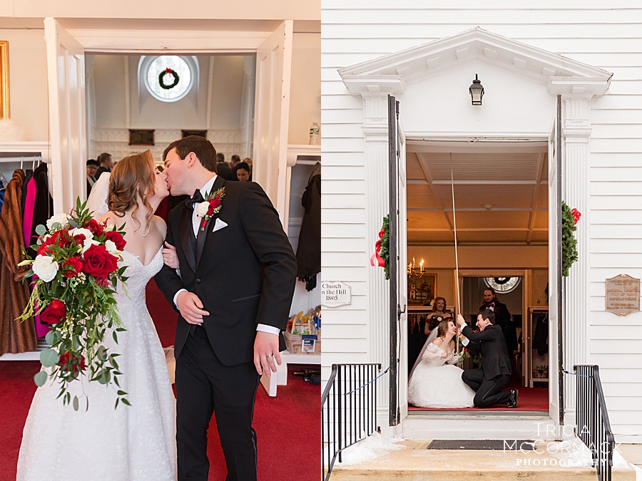 Their ceremony at the Church on the Hill was full of small, meaningful moments. After their first kiss, they paused together, reading from the hymn book and trying not to laugh, one of those perfectly unplanned moments that says everything. As they came back down the aisle, they rang the church bell together, marking the beginning of their next chapter.