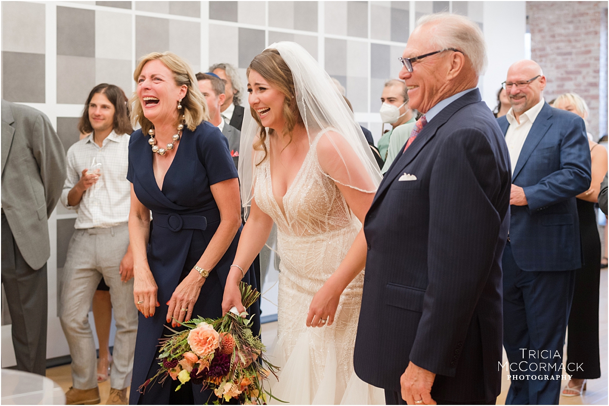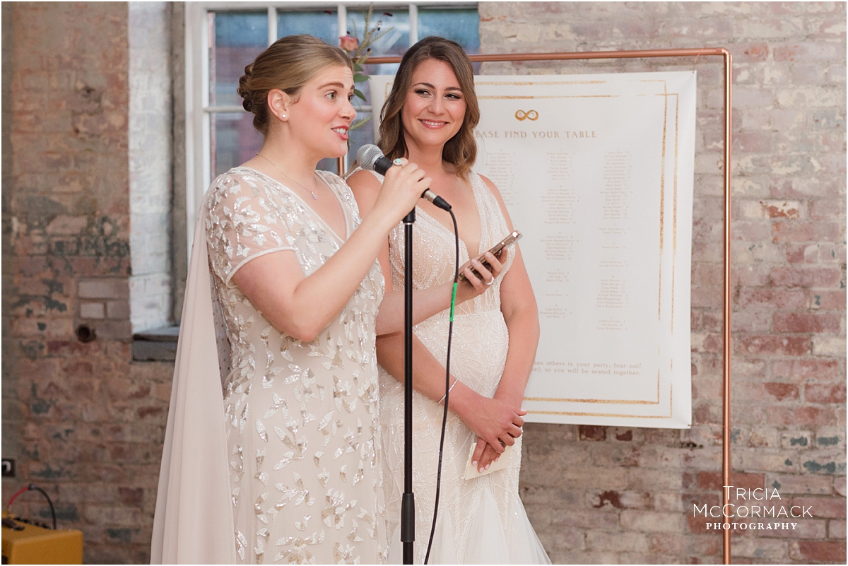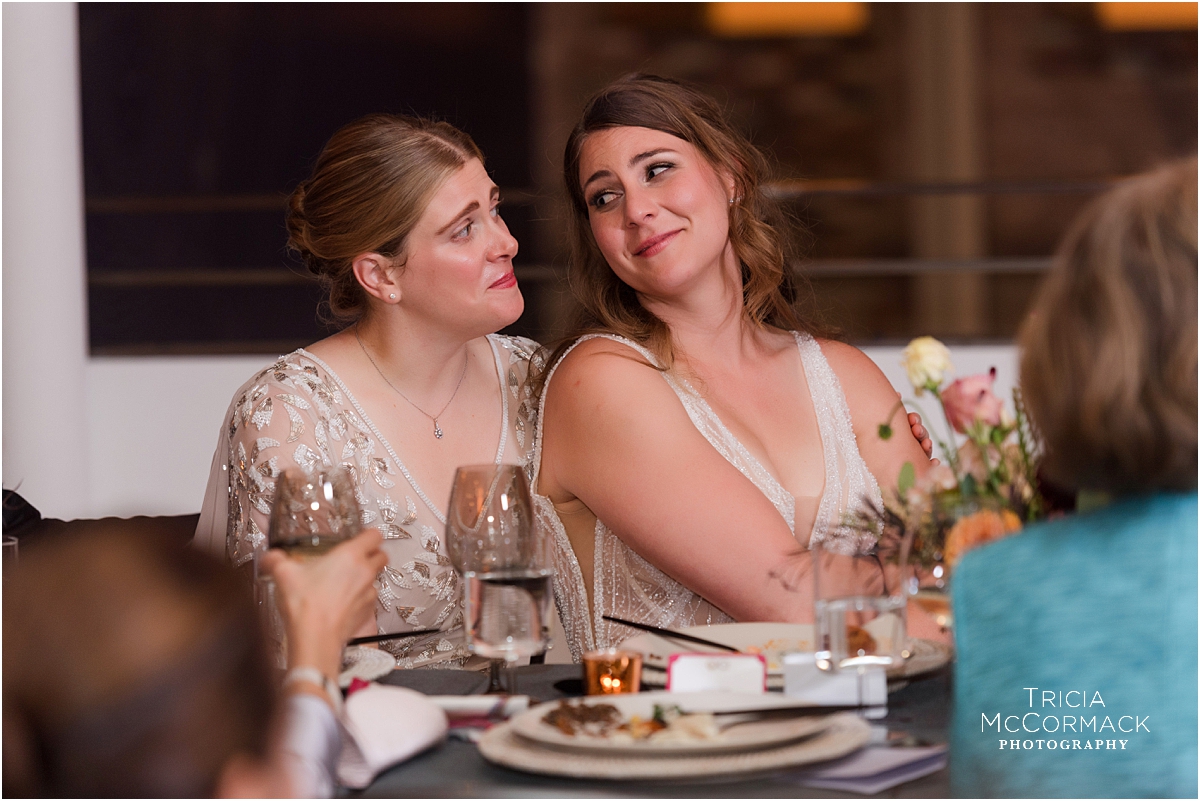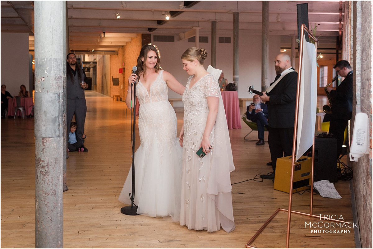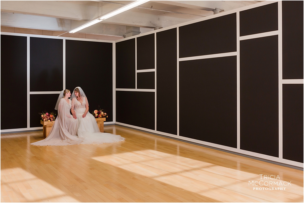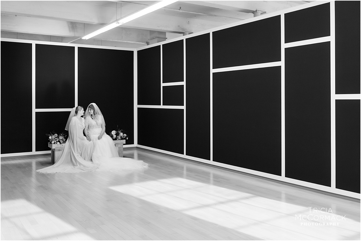 Now that their wedding day was finally here, I couldn’t wait to see how they would transform the space at Mass MoCA. It truly is one of the most unique venues in the Berkshires, Rebecca and Marianna’s guests enjoyed their dinner at long tables underneath lights from an exhibit, their band was incredible, and the endless galleries full of unique artwork made for some pretty stunning couple portraits. Those that love them most, delivered the most fantastic speeches and it made me smile to learn more about them!