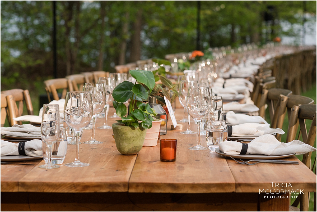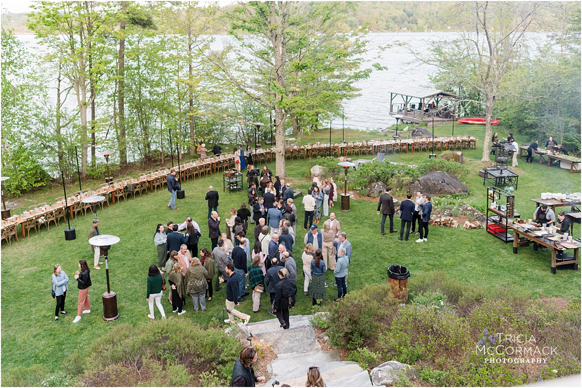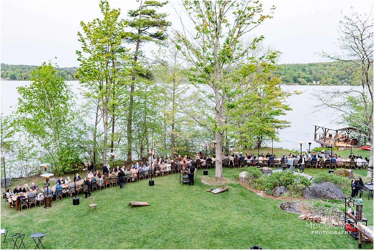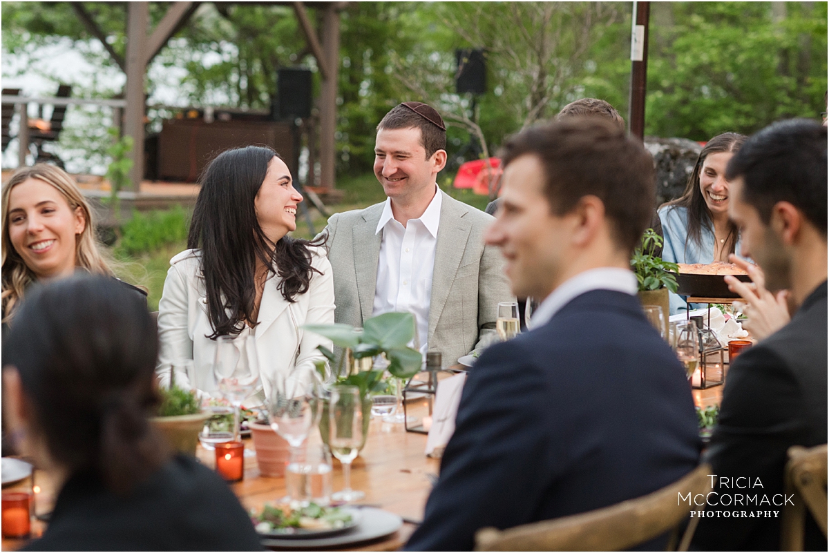 Rehearsal dinners usually include close family members, the wedding party and their dates, and any out-of-town guests that traveled from afar. Food, drinks, and toasts are often included in the evening’s events. Justin and Corrine hosted their fall rehearsal dinner at Blantyre Resort. Sarah and Greg enjoyed a summer evening rehearsal dinner at Wheatleigh Hotel. Naomi and Alex invited their guests to sit at one long lakeside table. Jennie and Jeremy held their spring rehearsal dinner at Bousquet.