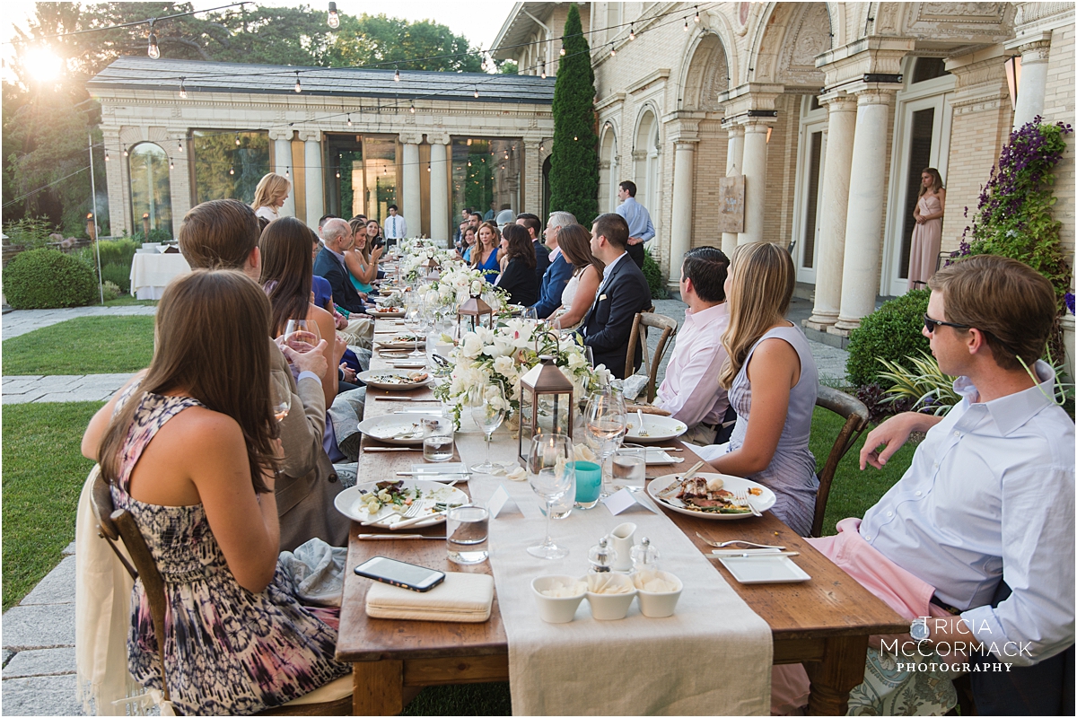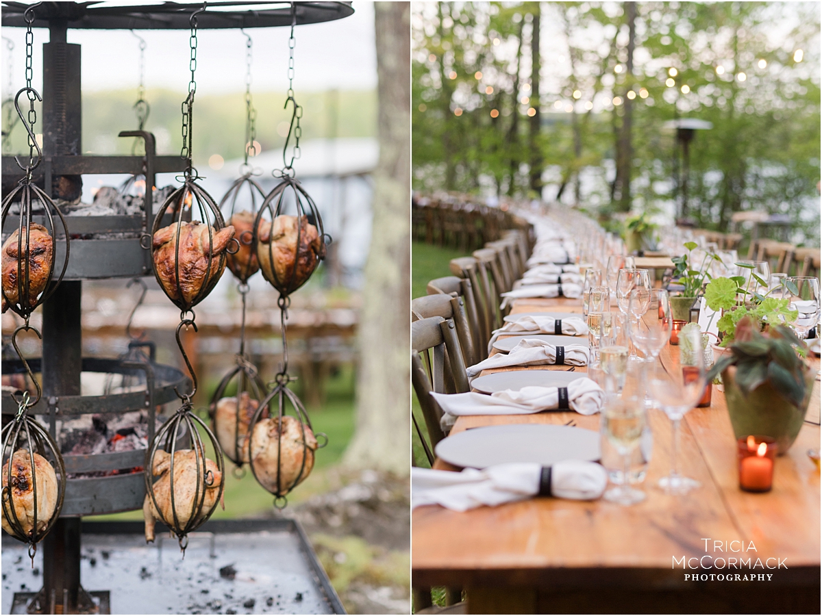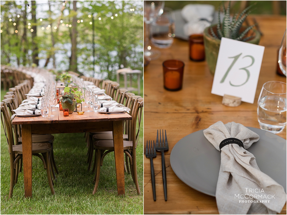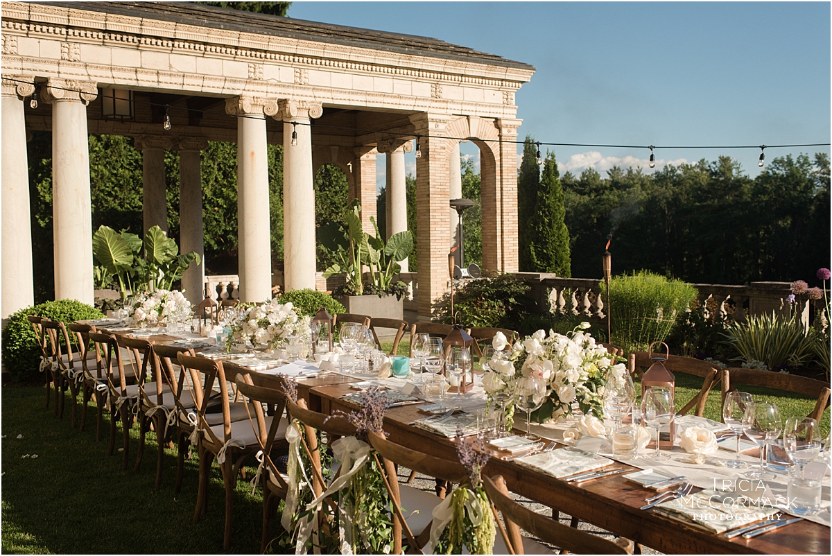 Rehearsal dinners usually include close family members, the wedding party and their dates, and any out-of-town guests that traveled from afar. Food, drinks, and toasts are often included in the evening’s events. Justin and Corrine hosted their fall rehearsal dinner at Blantyre Resort. Sarah and Greg enjoyed a summer evening rehearsal dinner at Wheatleigh Hotel. Naomi and Alex invited their guests to sit at one long lakeside table. Jennie and Jeremy held their spring rehearsal dinner at Bousquet.