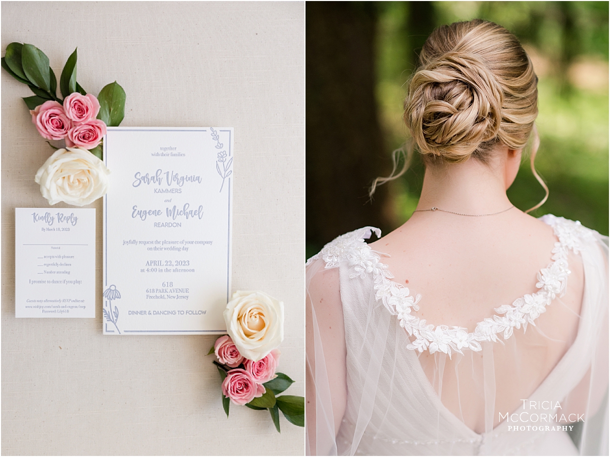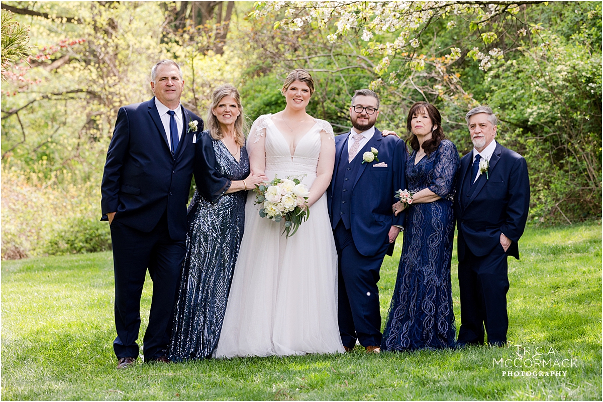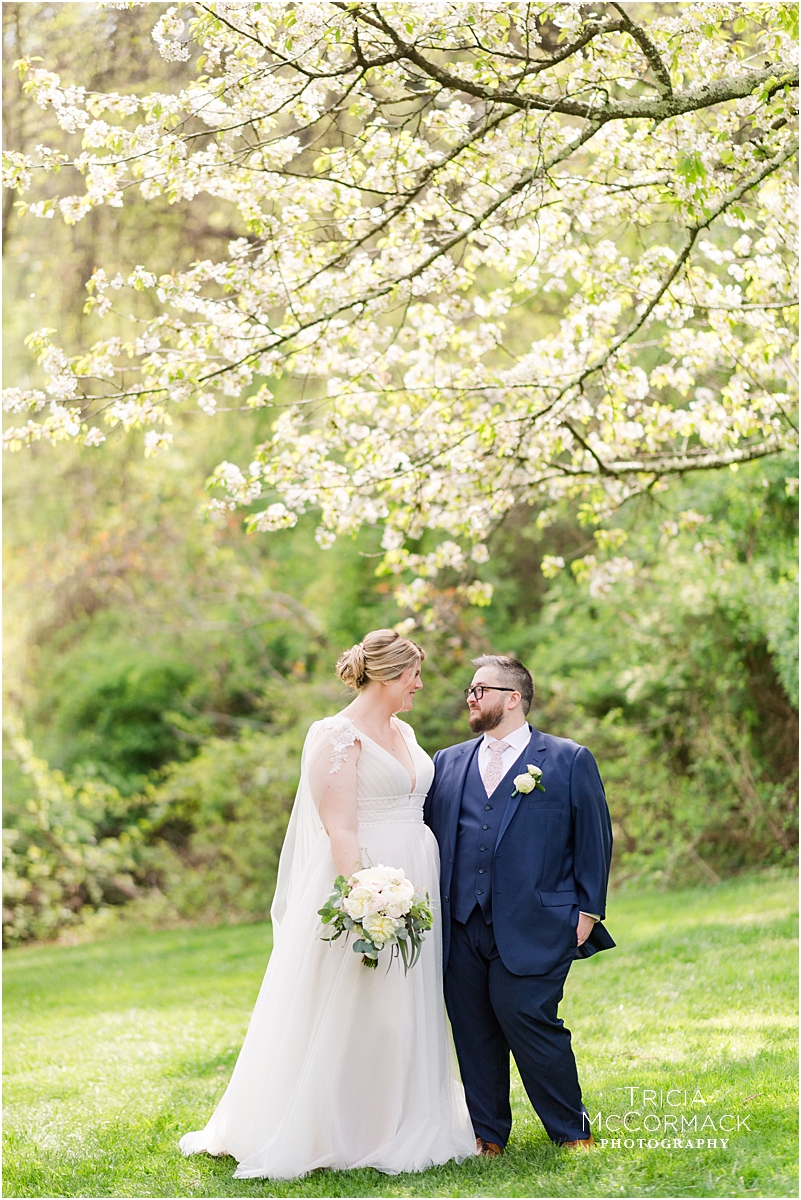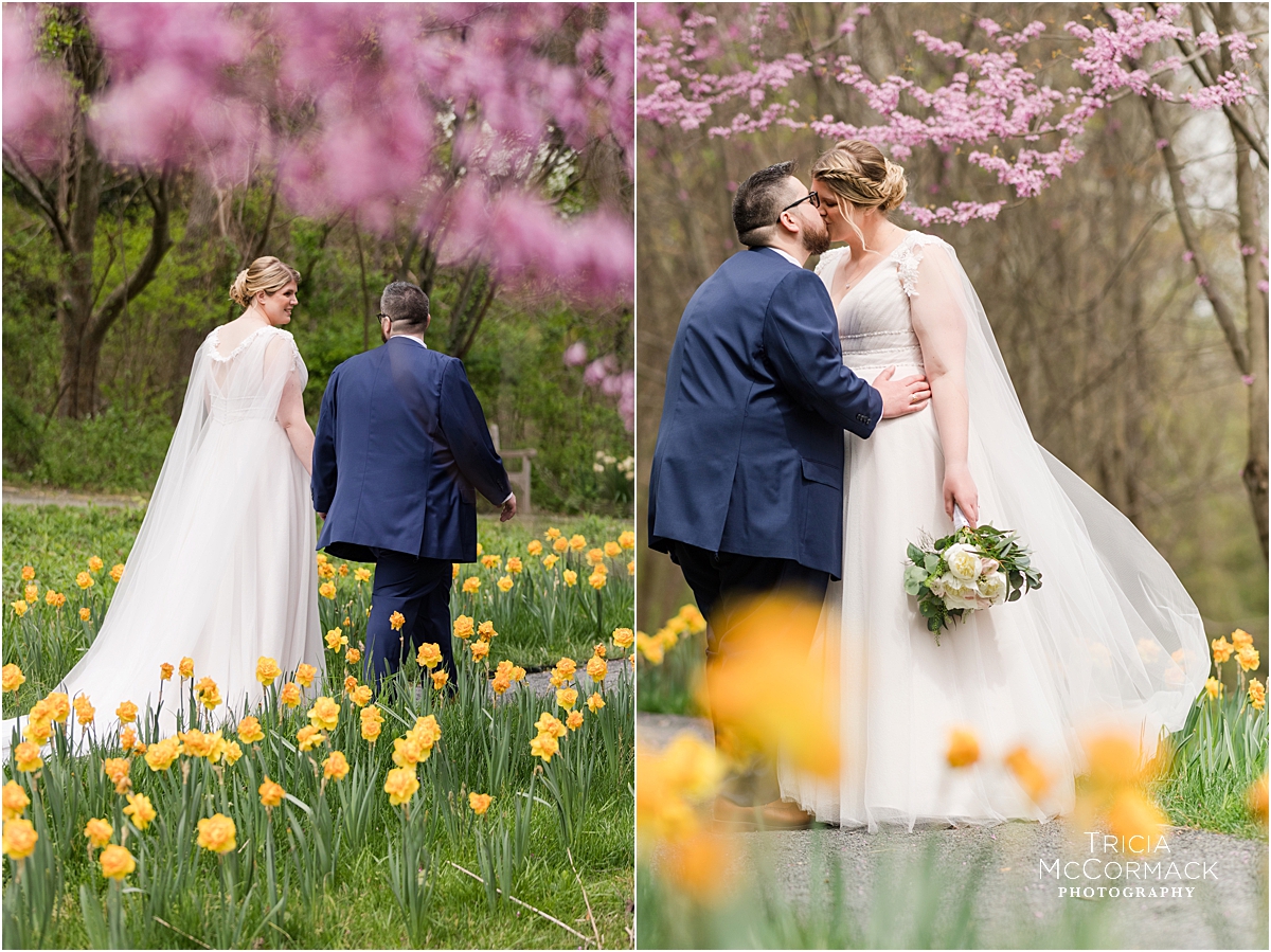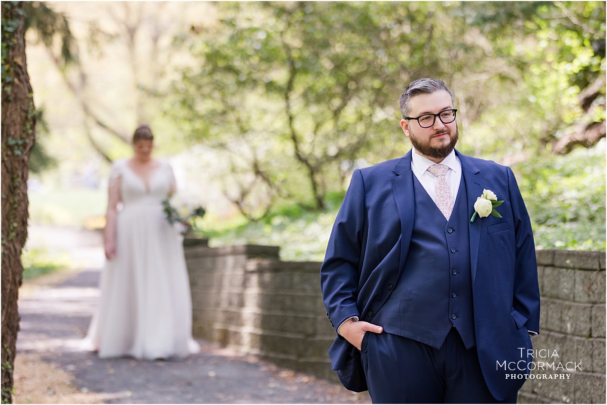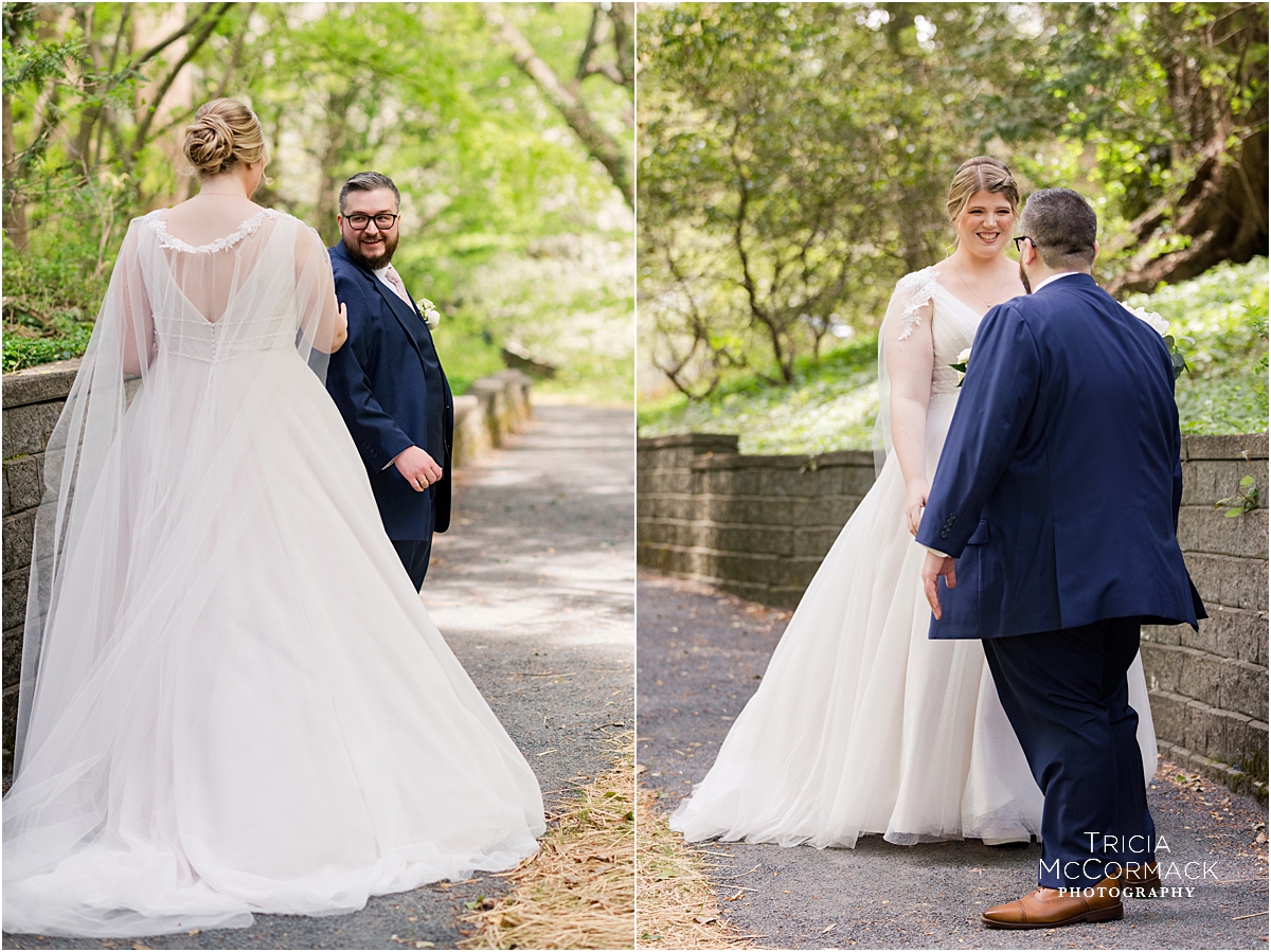Sarah and Eugene’s wedding at 618 in Freehold Township, New Jersey was unique for our Tricia McCormack Photography team. Lisa and I made the trip the day before and got right to work. We started by scouting out beautiful portrait locations in Deep Cut Gardens, a stunning park with gorgeous blooming trees and flowers. At the end of the ceremony at 618, Sarah’s mom made everyone smile with a ceremony surprise from the wedding scene of Love Actually (Can you hear it? “All you need is loooove…”) it was so adorable.