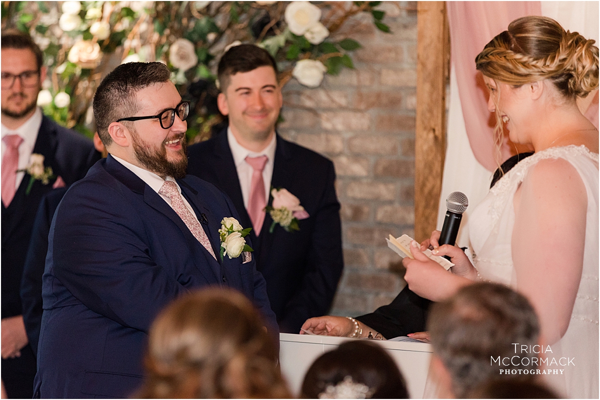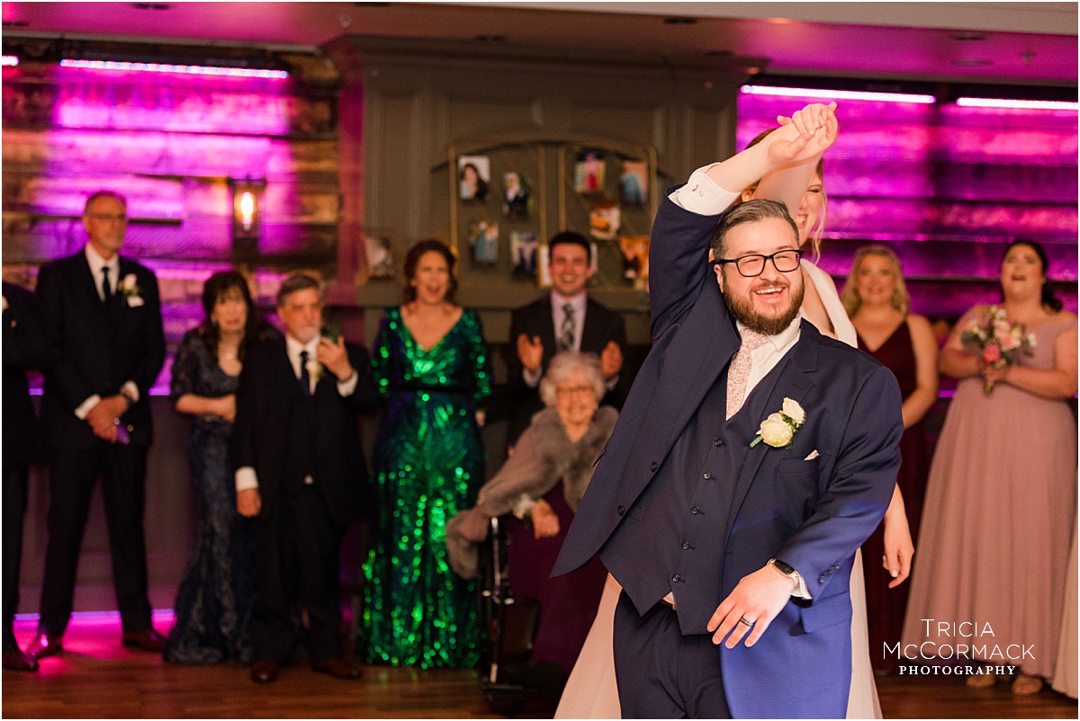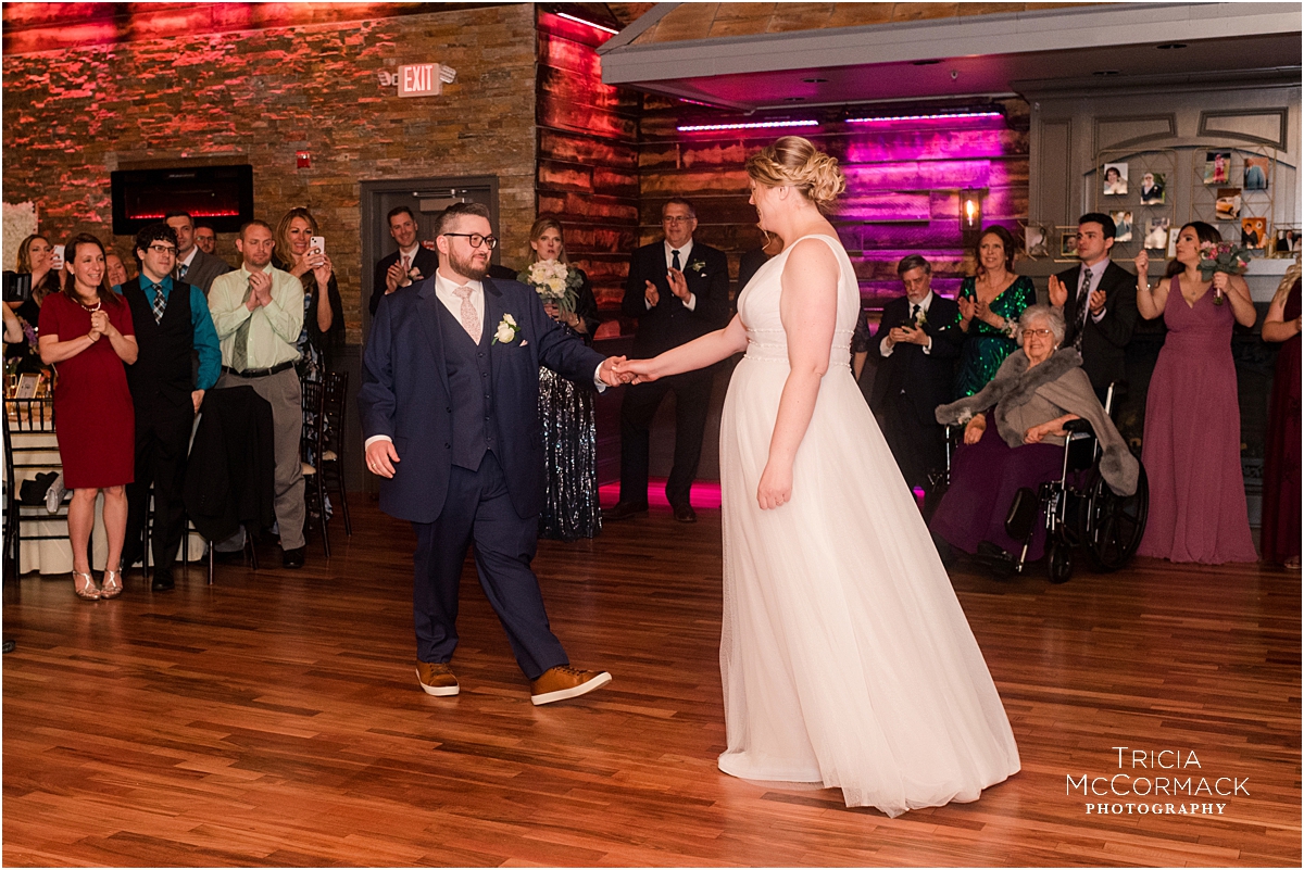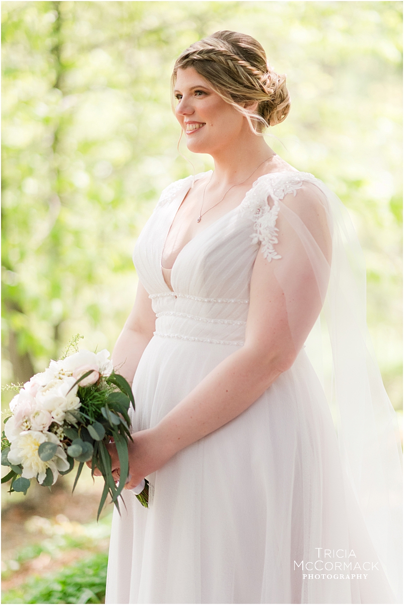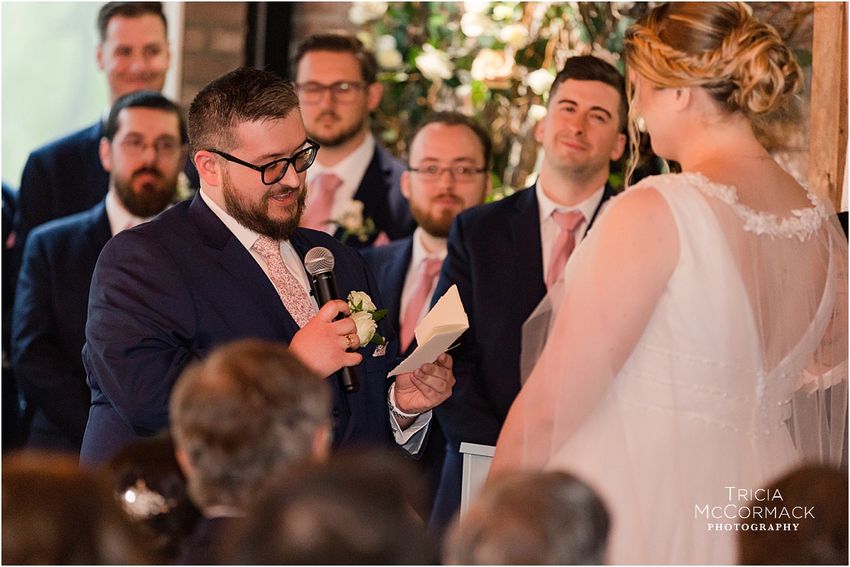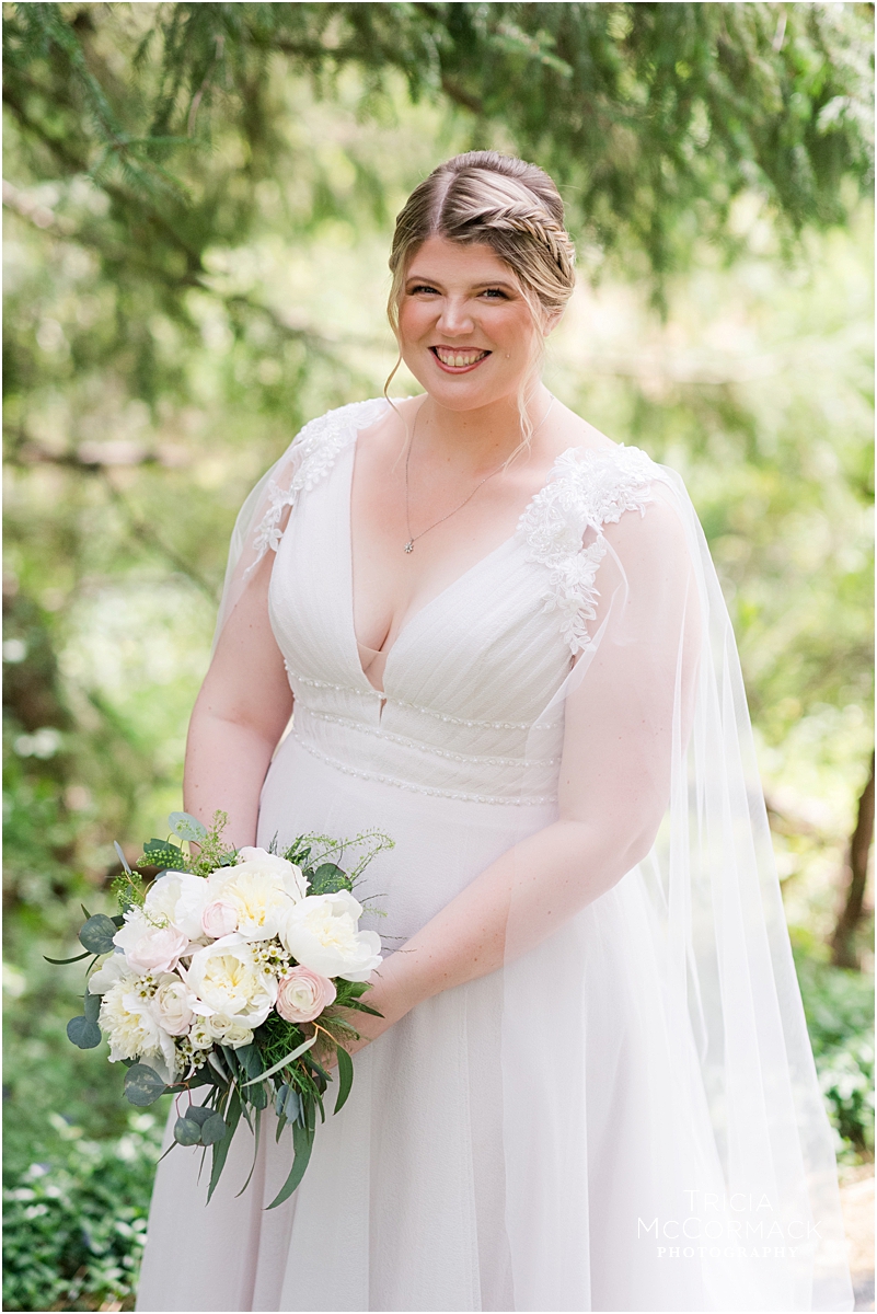 Sarah and Eugene’s wedding at 618 in Freehold Township, New Jersey was unique for our Tricia McCormack Photography team. Lisa and I made the trip the day before and got right to work. We started by scouting out beautiful portrait locations in Deep Cut Gardens, a stunning park with gorgeous blooming trees and flowers. At the end of the ceremony at 618, Sarah’s mom made everyone smile with a ceremony surprise from the wedding scene of Love Actually (Can you hear it? “All you need is loooove…”) it was so adorable.