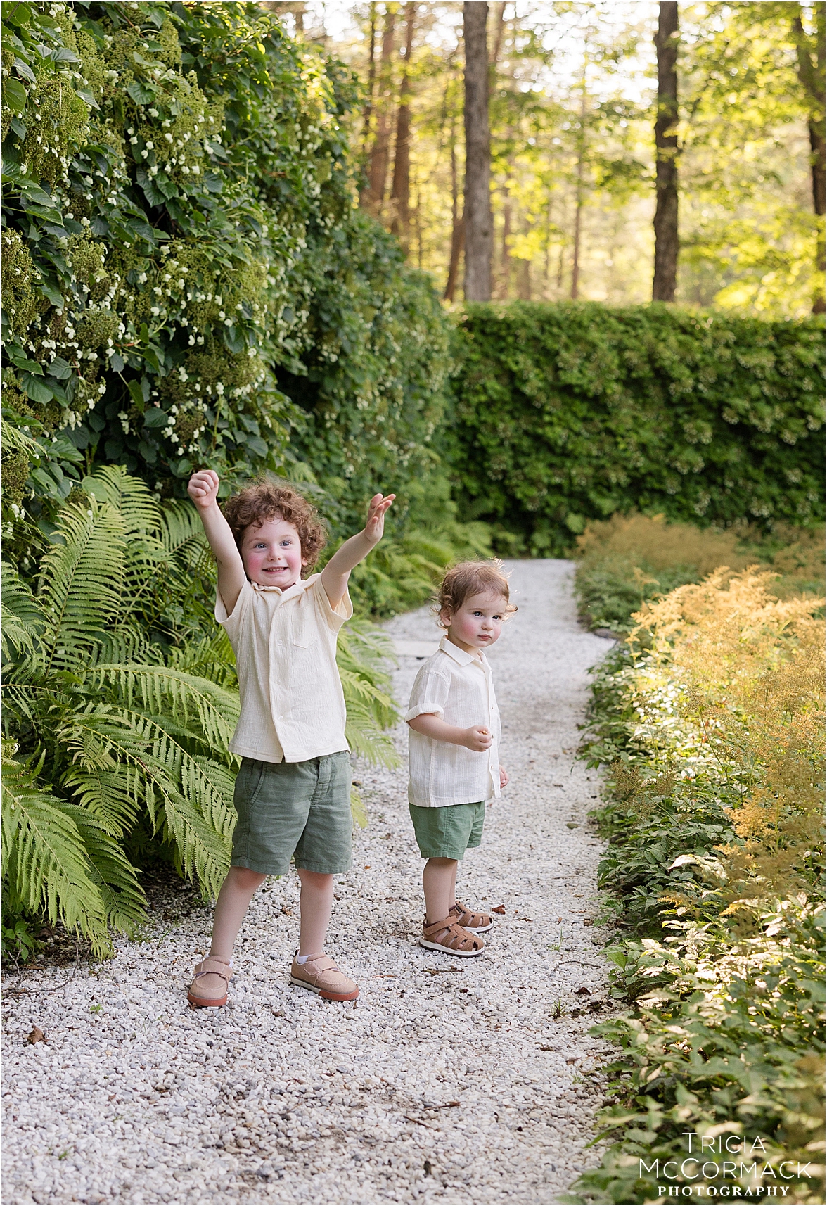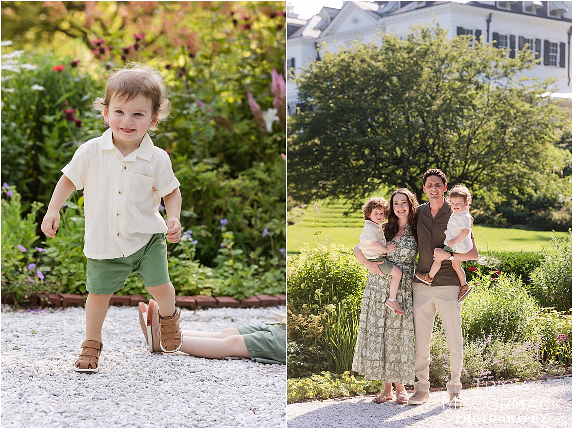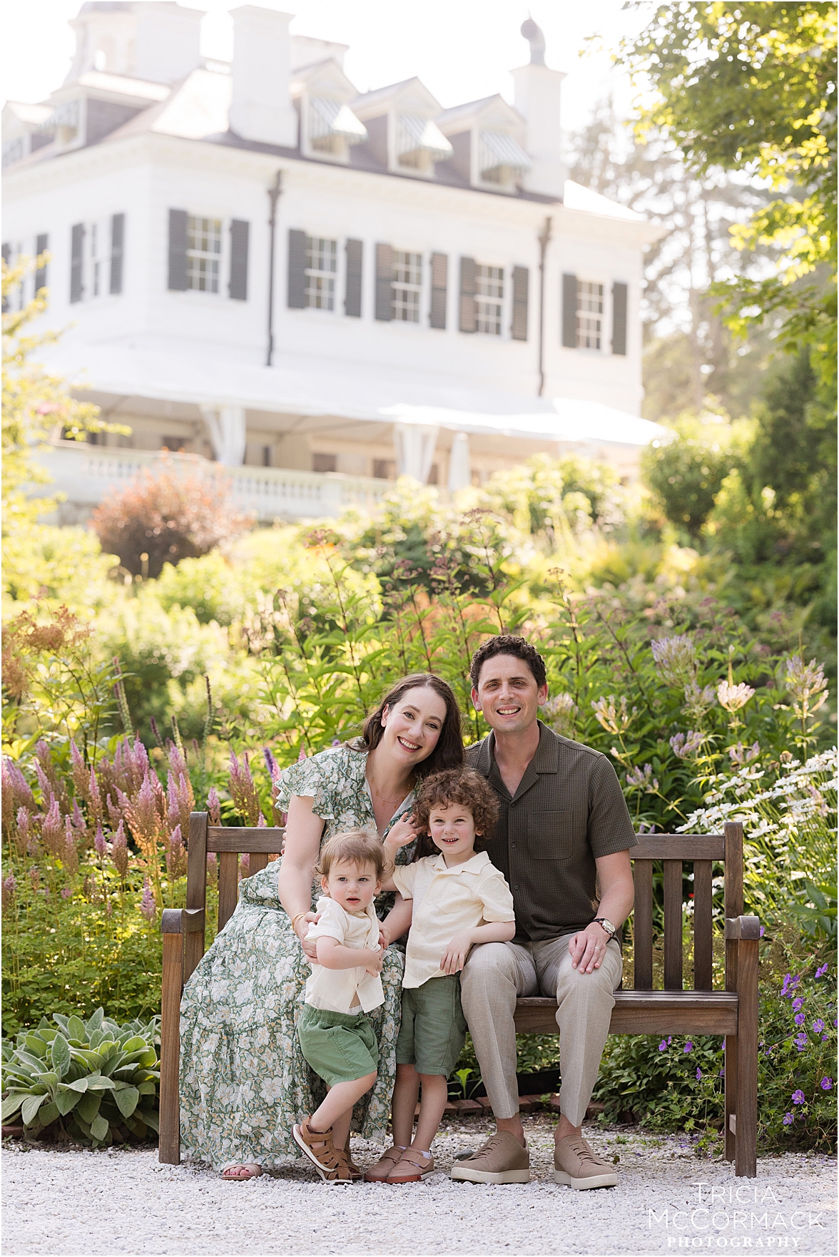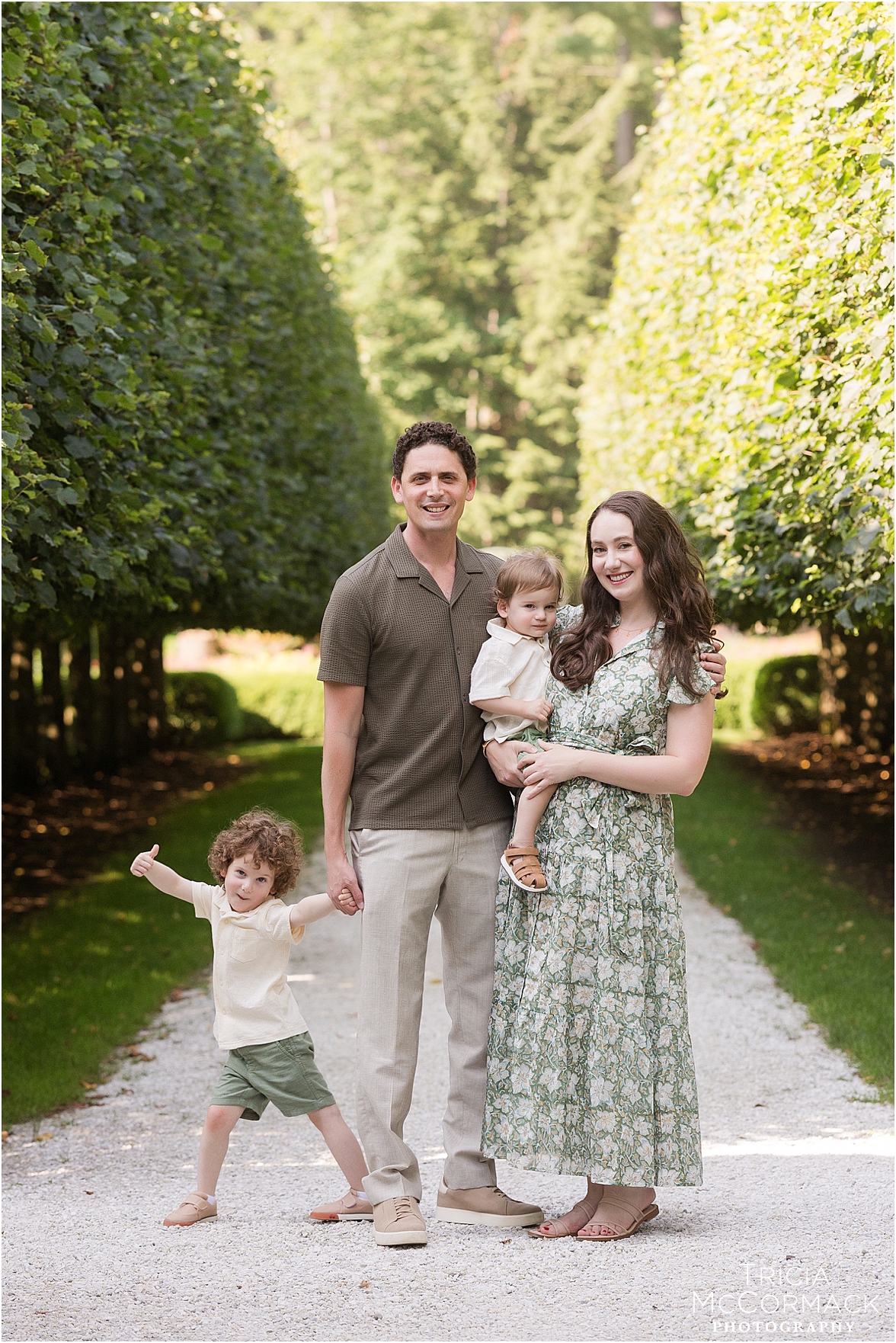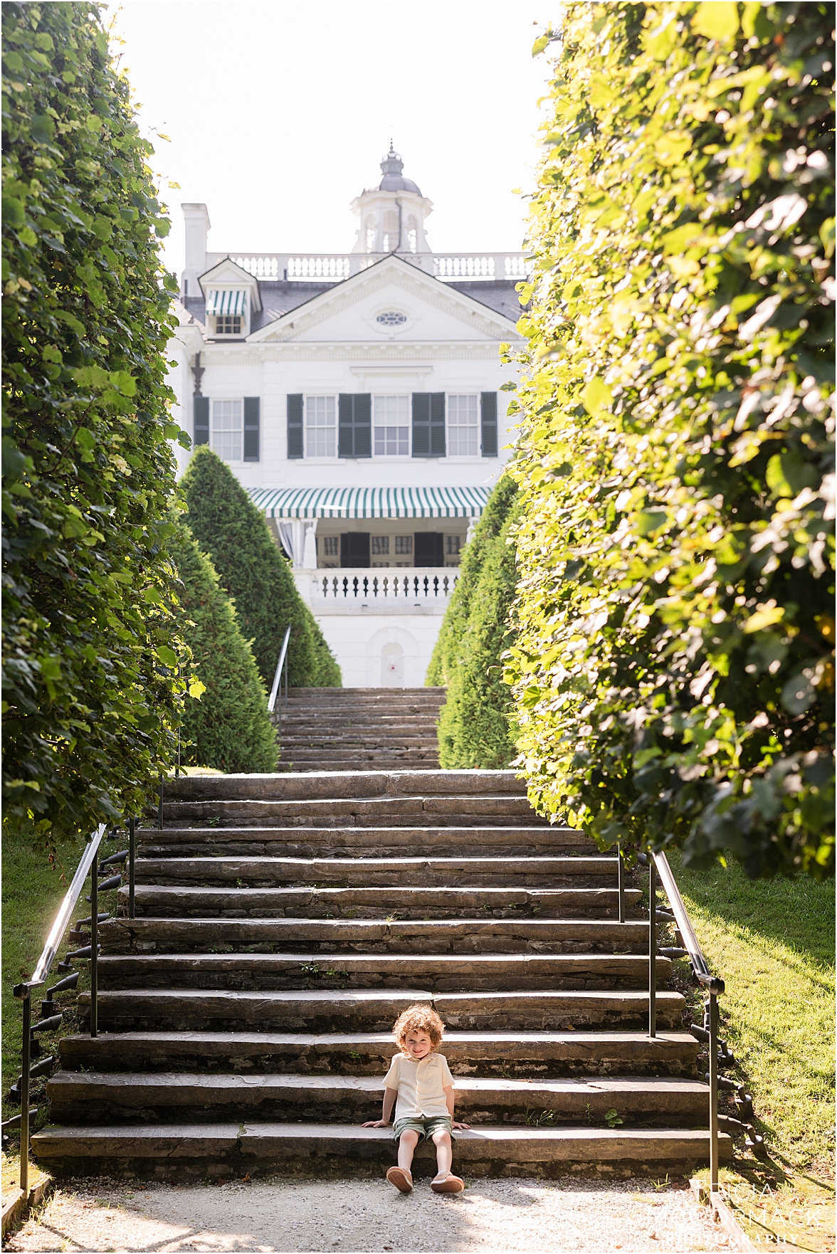 The couple was married at The Mount a decade ago, and this time they brought along their two little boys, ages three and one, to be part of the memories. It was such a special full-circle moment, walking the same gardens and paths where their wedding day began, now as a family of four.