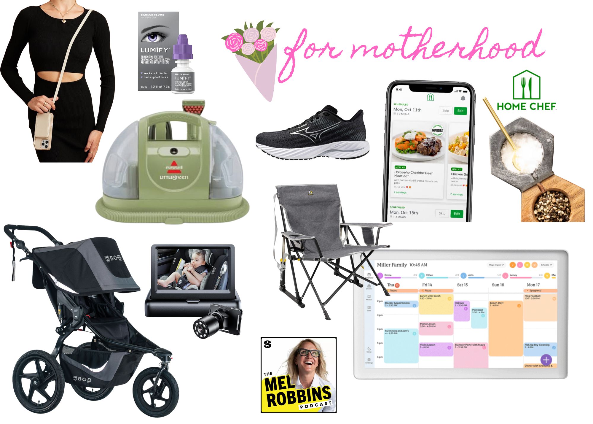 | hands free phone case| B.O.B stroller| Little Green Machine | Lumify Eye Drops| baby car monitor| the sneaker I can’t stop buying| The Mel Robbins Podcast | Portable chair for softball | Home Chef Subscription |Skylight Calendar